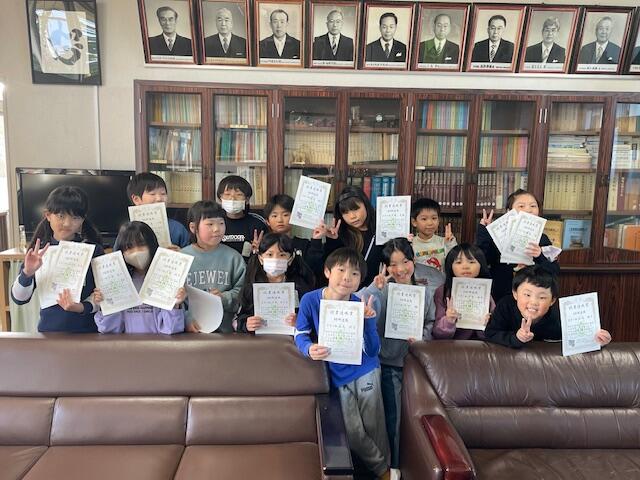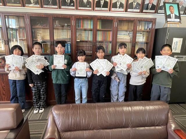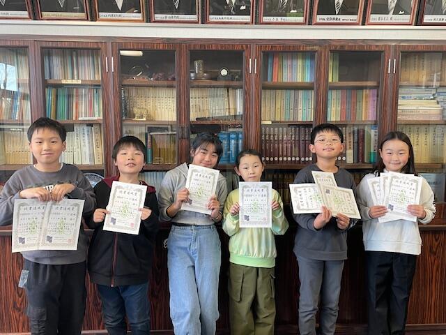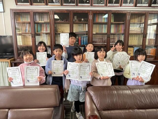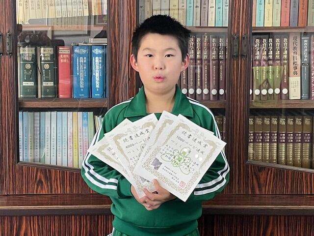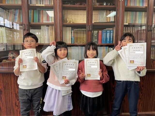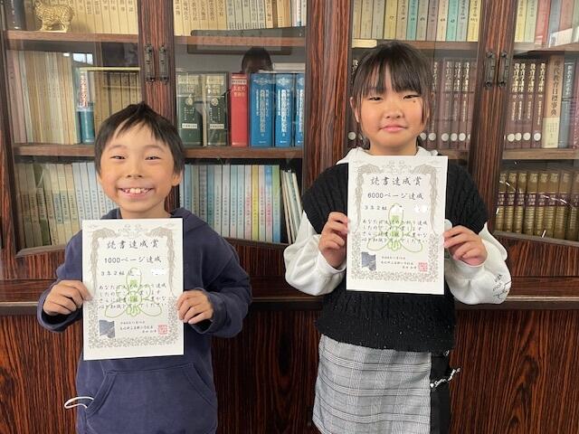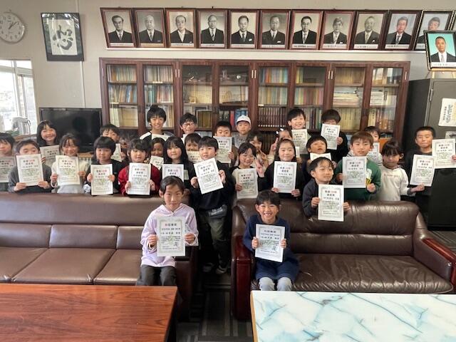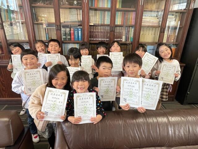 4年を中心に読書表彰を行いました。多い子どもで今年度通算2万4千ページを達成しています。