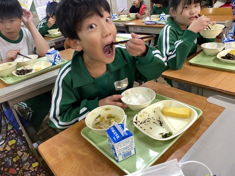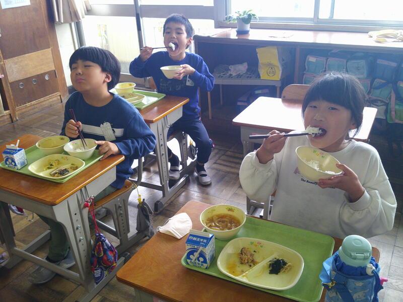 「やぶき有機米」のごはんが給食に出ました。しっかりとした粘りがあってとてもおいしいご飯でした。