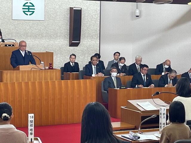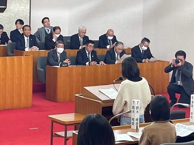町内6年生の代表が、自分達の住む町について質問や意見を議会で述べました。議長も児童が務めました。通学路の安全や施設の整備や夏休みの期間に関することなど、子供達目線の質問に町長や教育長が真剣に答弁しました。