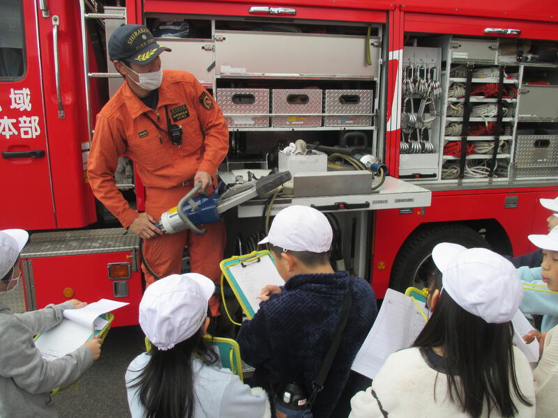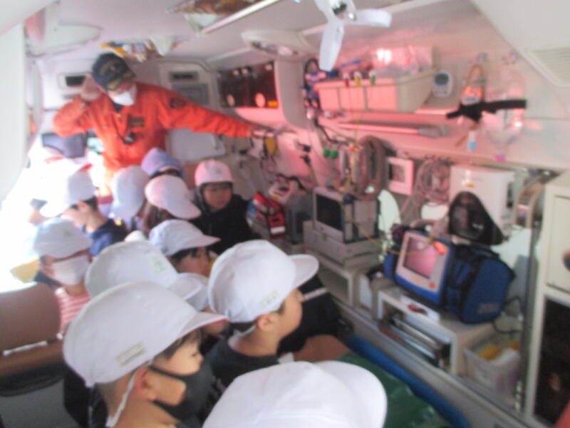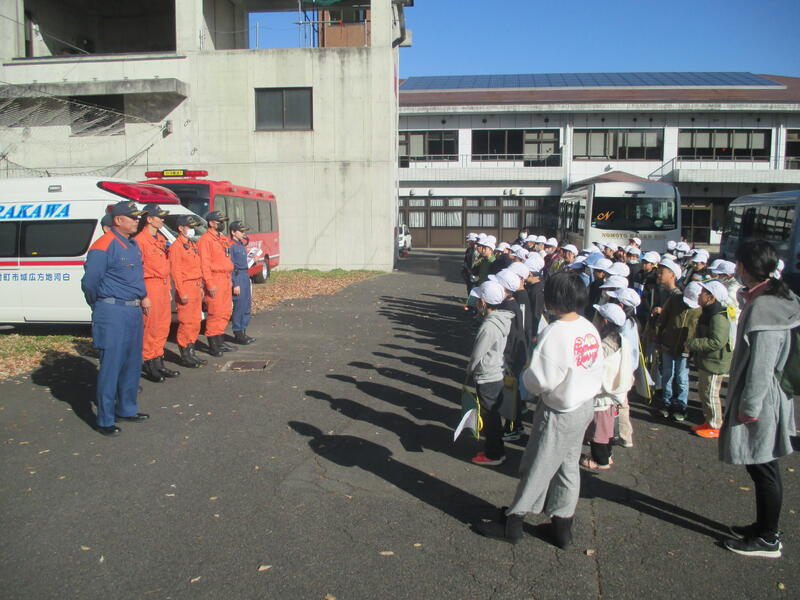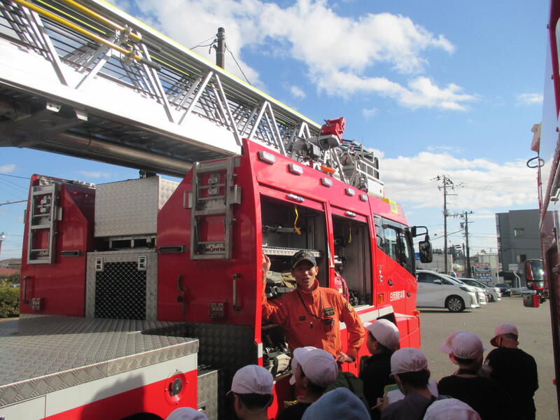 社会科で「火事からくらしを守る仕事」について学んでいる3年生が、消防署見学に出かけました。はしご車や救急車を間近で見た子ども達は目を輝かせていました。県南広域をカバーする本部の通信指令室も見せていただきました。