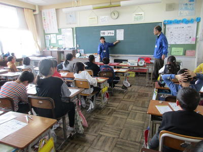 4年生でふくしま統計出前講座を行いました。県企画調整部統計課の職員の方3人がそれぞれの学級で授業を行いました。福島県の面積は日本の都道府県で第何位? 猪苗代湖は?福島県で一番高い山は? 福島県の人口は? 統計を元にした問題を解いていくうちに福島県の姿が見えてきました。統計資料の大切さを学ぶことができました。