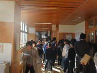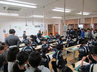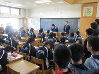 入学説明会が矢吹中学校で行われました。日程説明を聞いた後、学級毎に1年生の授業を参観しました。家庭科、数学科、英語科、美術科の授業でした。みんなで話し合いながら進める家庭科の授業では笑顔がありました。算数ではなく数学科の図形の授業では小学校との違いを少し感じました。英語科の授業はクラスルームイングリッシュ・英語で授業を進める、楽しさもある授業でした。美術科では一人一人が自分の作品に思いを込めて集中して作品づくりをしている姿を観ることができました。その後は4つの小学校の子ども達全員で勤労者体育館で説明会を聞きました。最後は2学年の学級委員の案内で部活動見学をしました。