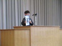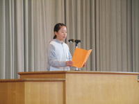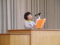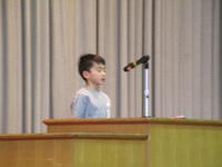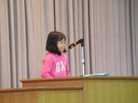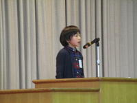 2学期がんばったことの発表を2年生の高橋香瑛來さん、4年生の圓谷奏輝さん、6年生の小飯田夏柚さんが行いました。目標をもってがんばったこと、新しいチャレンジをしたこと、最後まであきらめないでがんばってよかったことなど大きな声で堂々と発表できて立派でした。3学期にがんばりたいことも発表してくれました。聞いている全校生の態度も立派でした