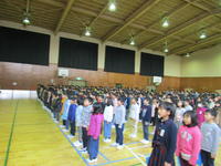 本日から第3学期がスタートしました。始業式は体育館でおこないましたが、姿勢もよく立派な態度で臨むことができました。式では「笑顔であいさつ、元気に毎日登校すること」「次の学年に向けての学習のまとめをしっかりやり、自信をもって進級できるようにすること」「いろいろな友だちのよさに気づき、友達を増やすこと」の3つのめあてについて話をしました。3学期がんばることの発表を1年生の須藤旭さん、3年生の添田楓人さん、5年生の佐治望未さんが行いました。学習のこと、3学期の行事のことなど自分の目標を堂々と発表することができました。最後に心を合わせて全員で大きな声で校歌を歌いました。