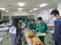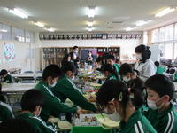 今週は5年生が楽しみにしているバイキング給食があります。本日は5年1組とたんぽぽ学級が行いました。震災を経験した私達は、あたりまえのことがあたりまえにできる喜びを温かな給食をいただくことからも感じることができました。食物やこんだてを考え・作ってくださる人に対する「いただきます」の感謝の気持ちを忘れないでほしいと話をしました。