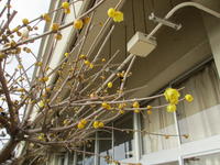 笑顔であいさつ元気に登校 校庭花壇の「ろう梅」が咲き始めました