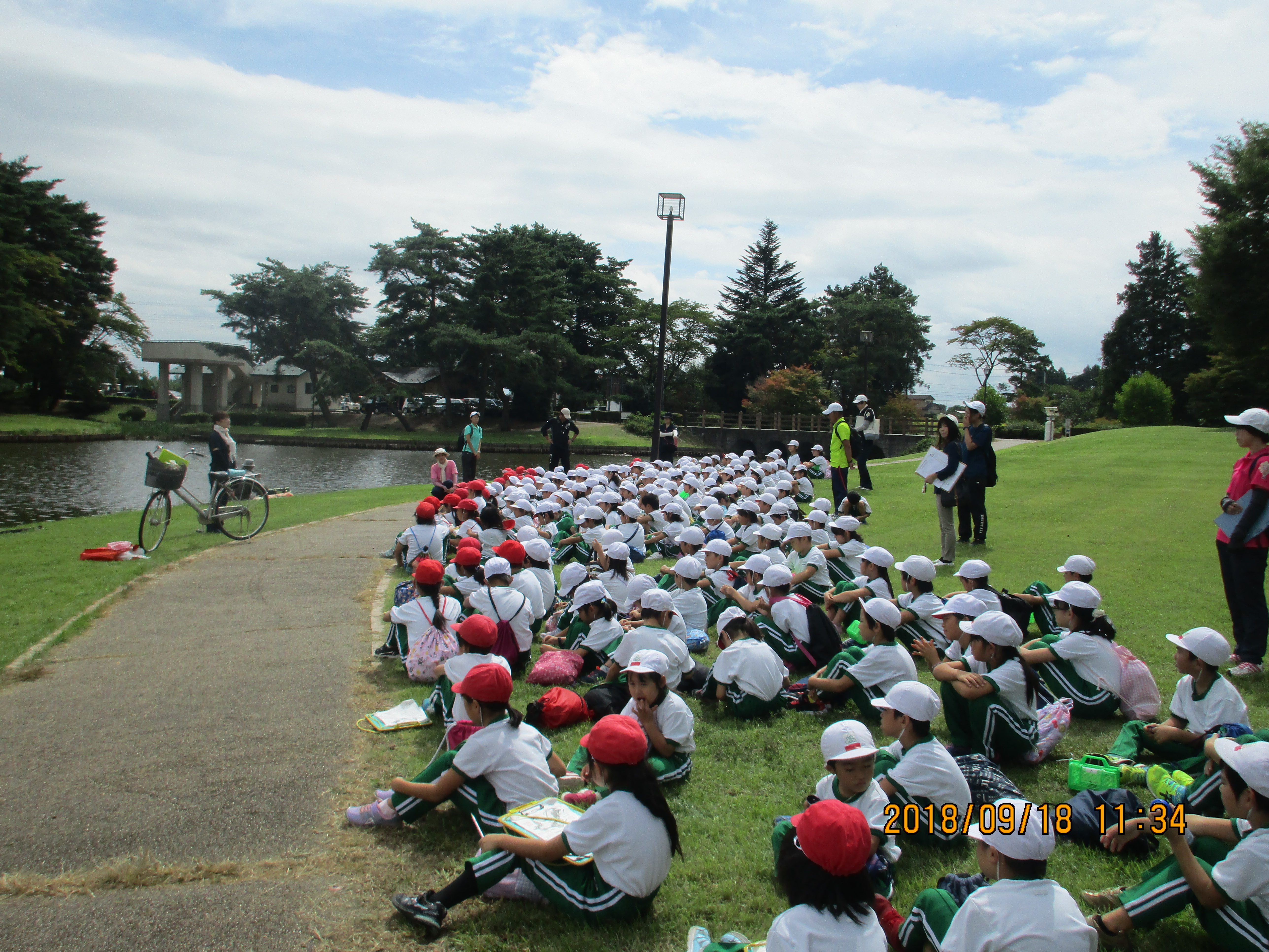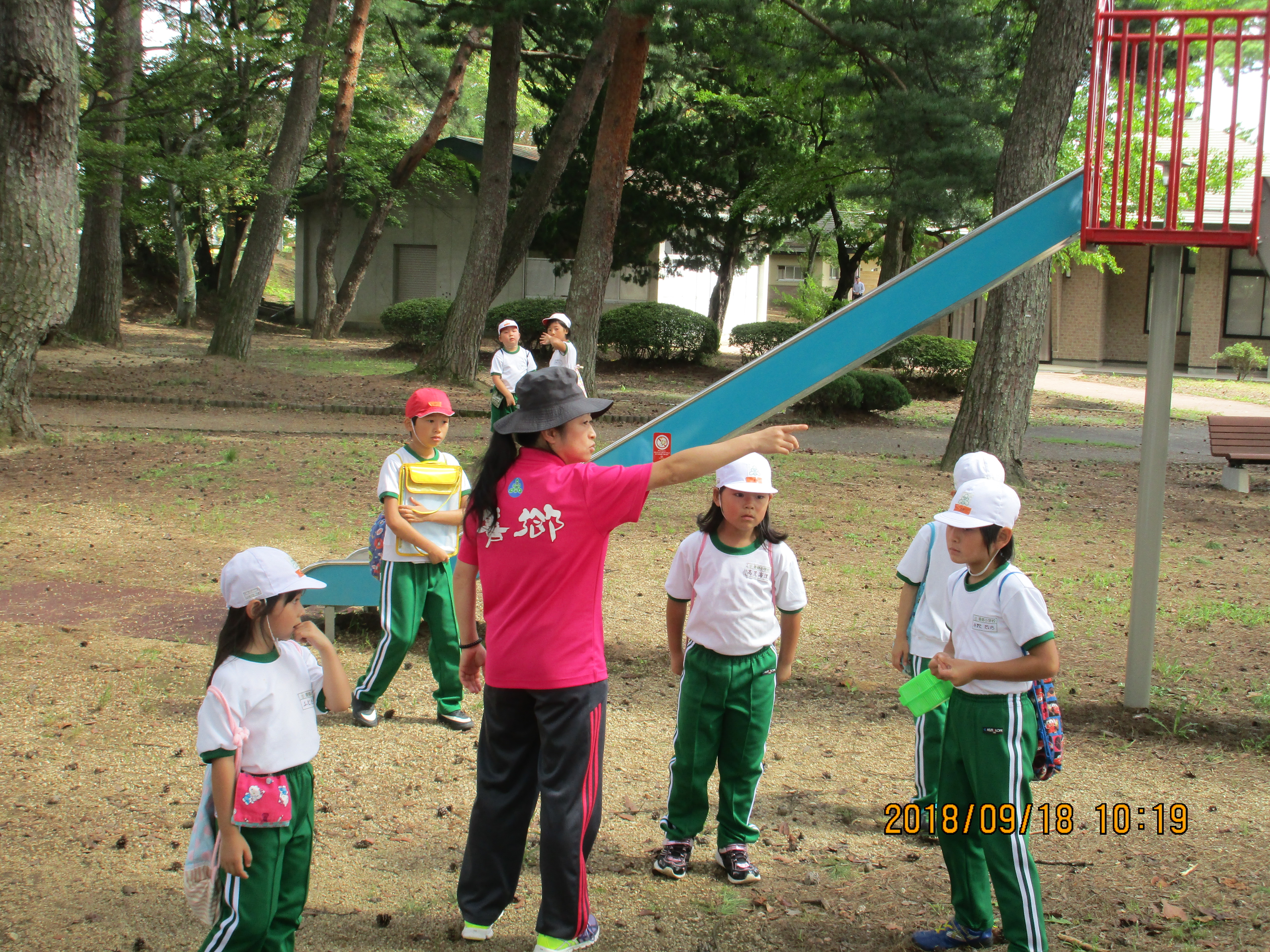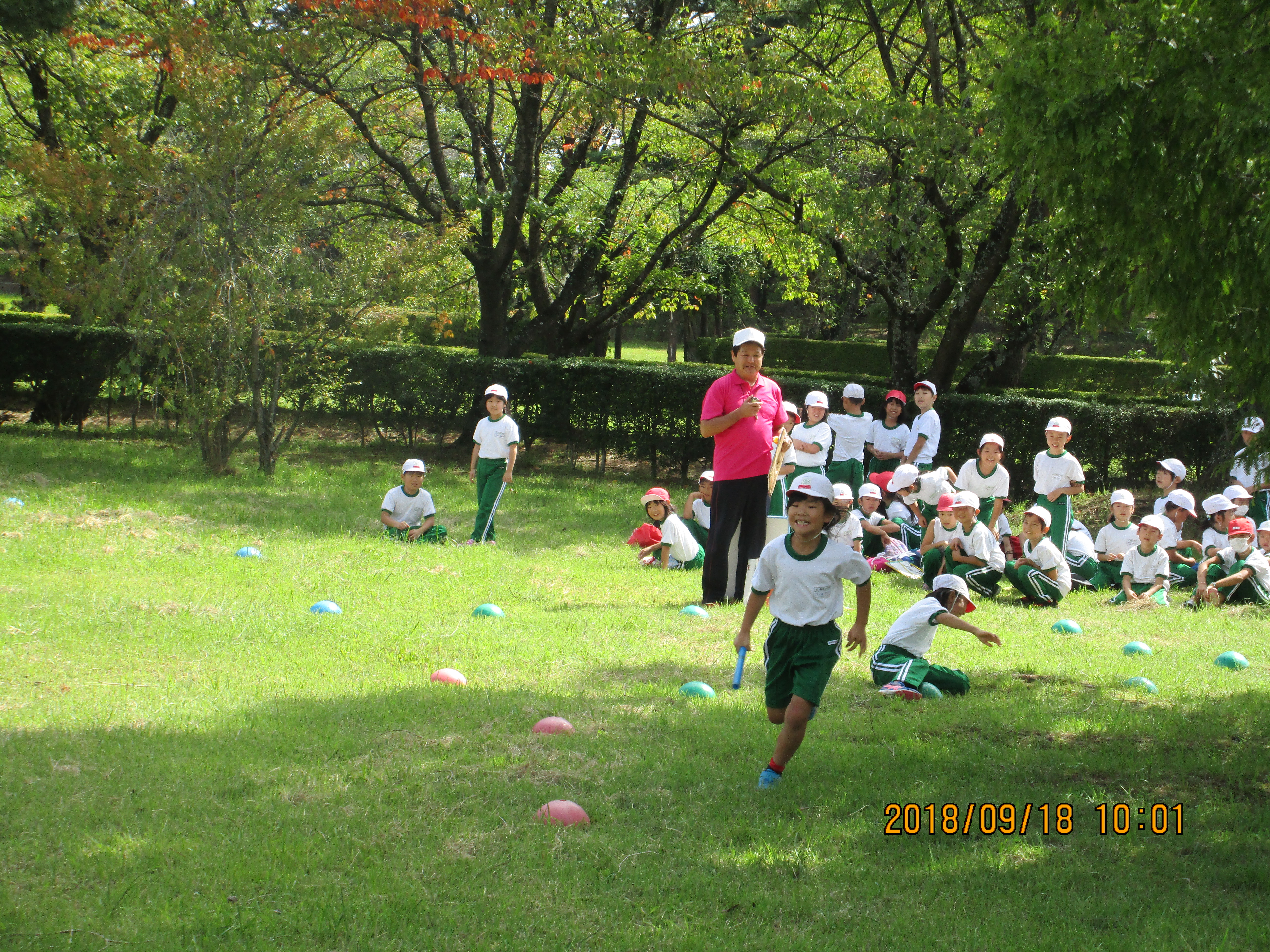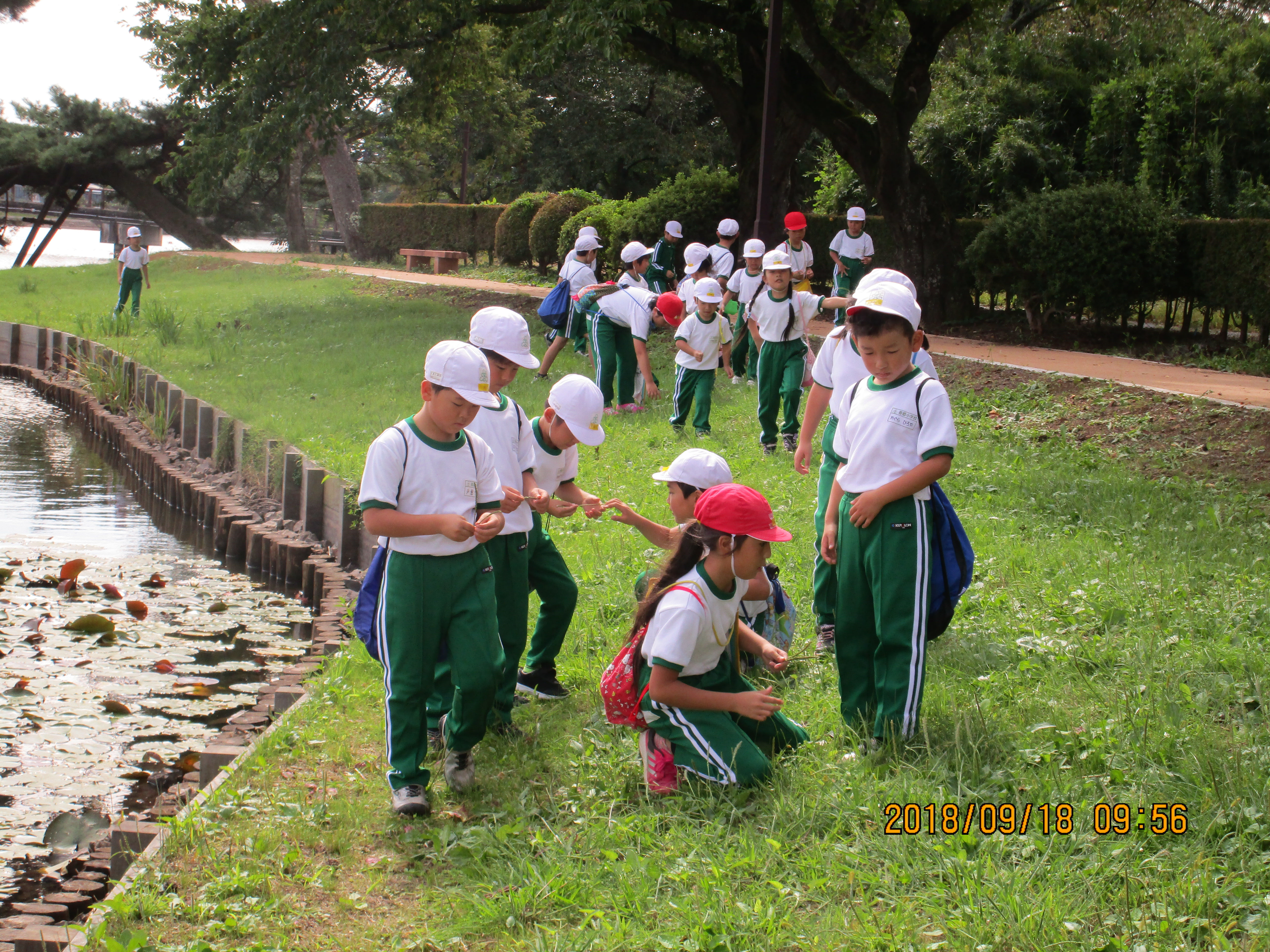 清々しい秋晴れの昨日、大池公園で1年生、2年生、3年生が自然教室を行いました。 3年生が班長さんになって34班になって活動しました。活動はオリエンテーリングで各コーナーを回りました。「まつぼっくりホールインワン」「山リレー」「オオバコずもう」「あんごうをさがせ」「ぼっくりゲット」の5つのコーナーと「生き物・草花ビンゴ」の6つの活動がありました。自然に親しみながら異学年の子どもたちが協力して楽く活動することができました。