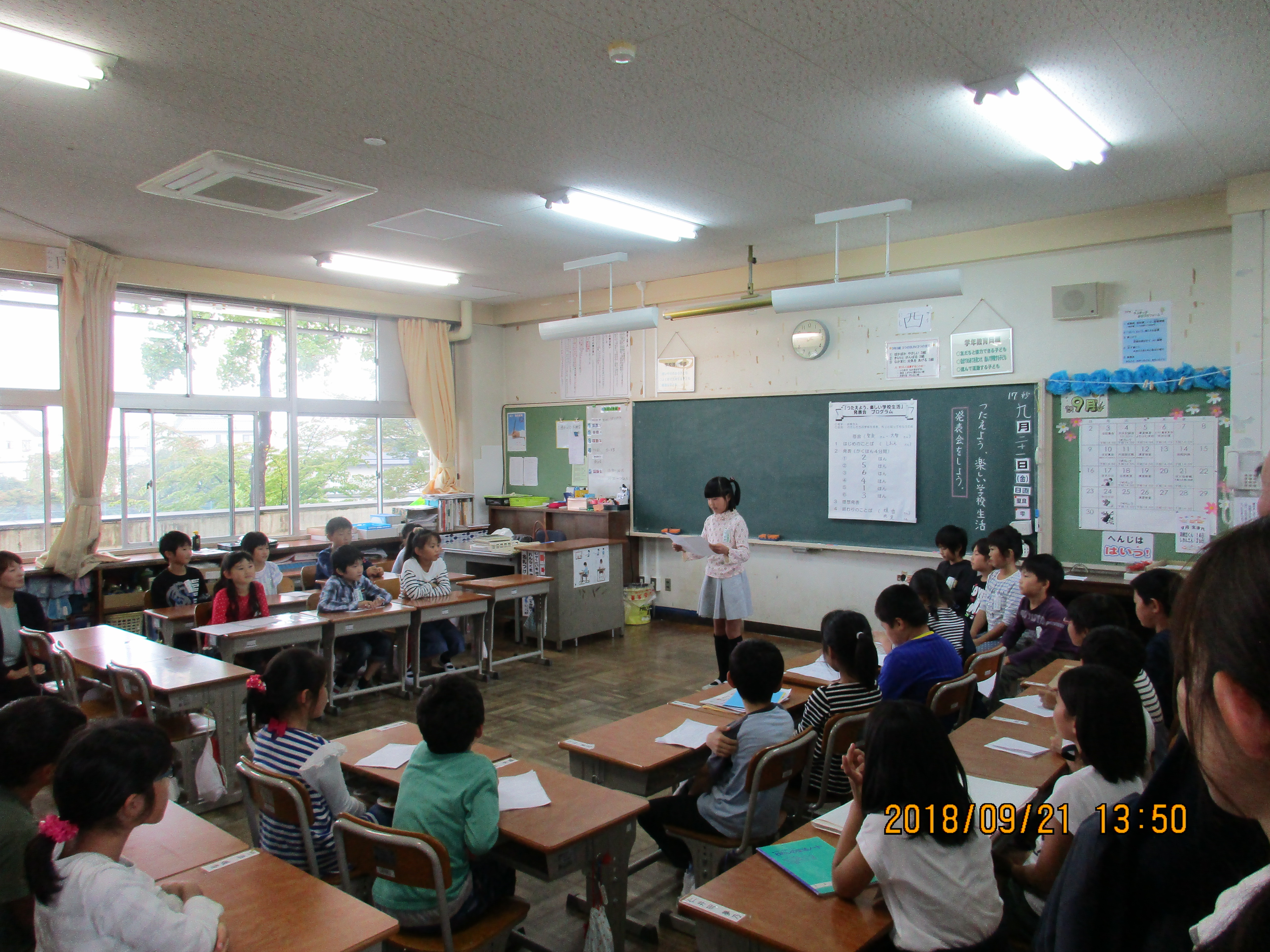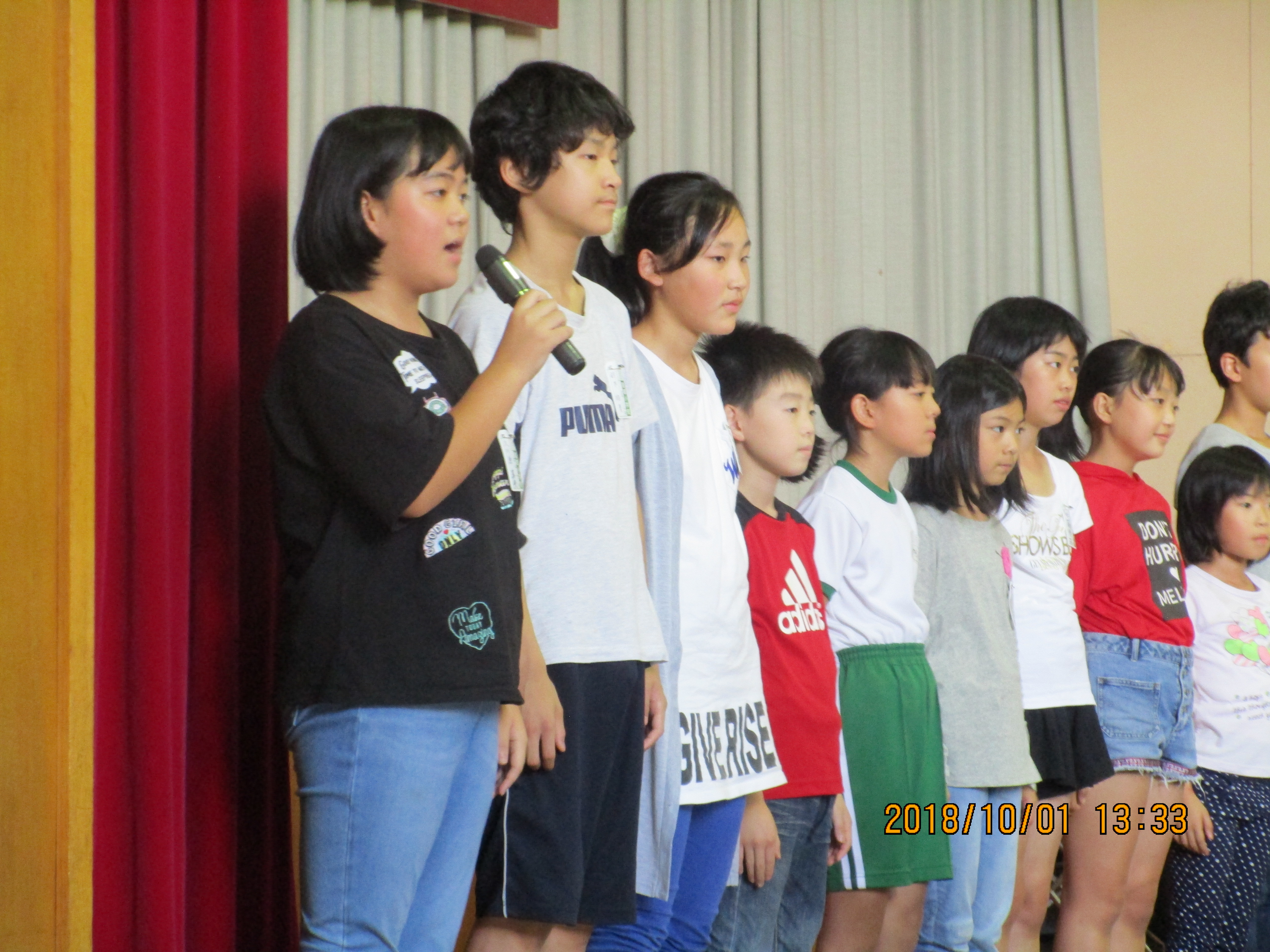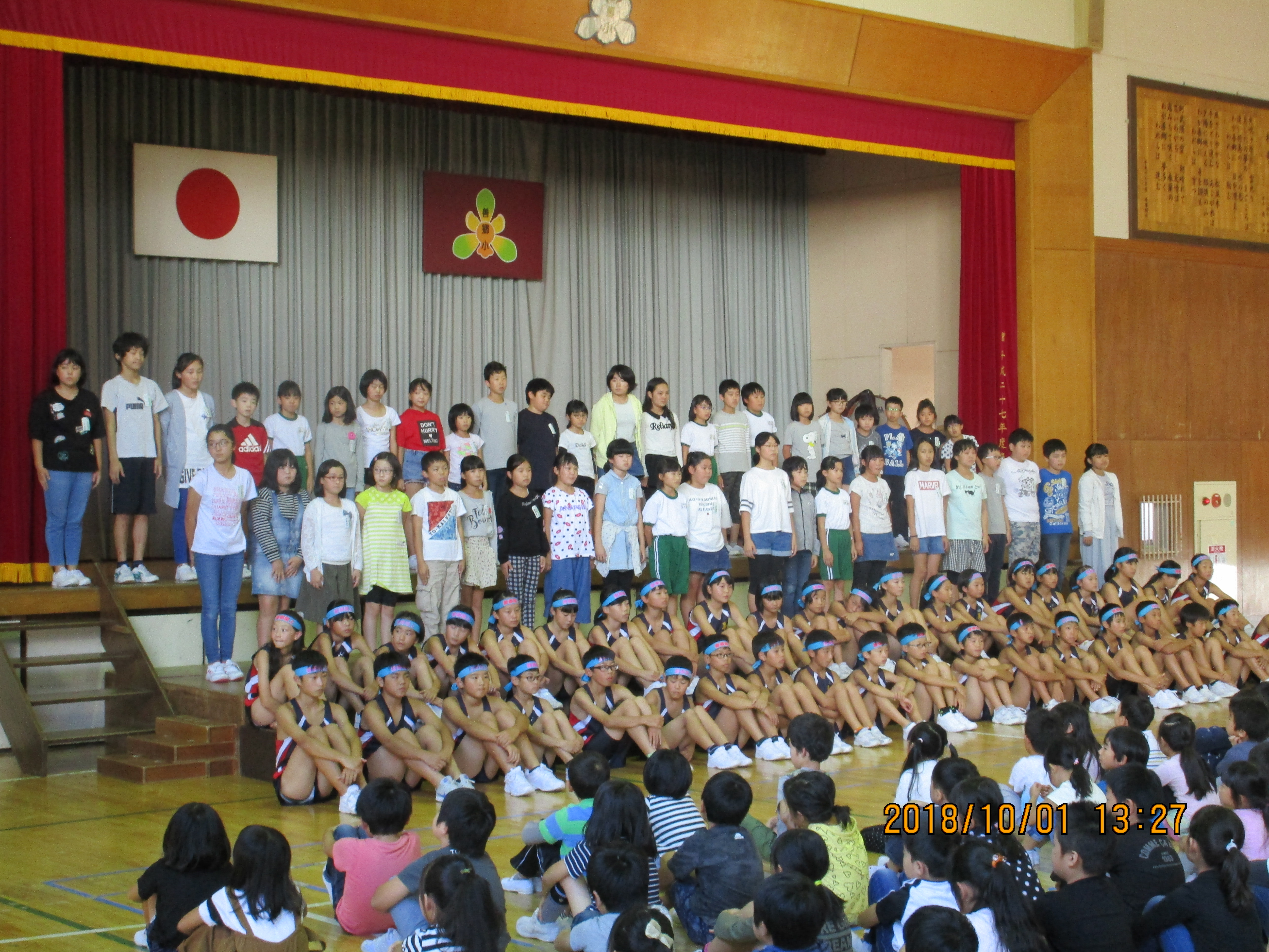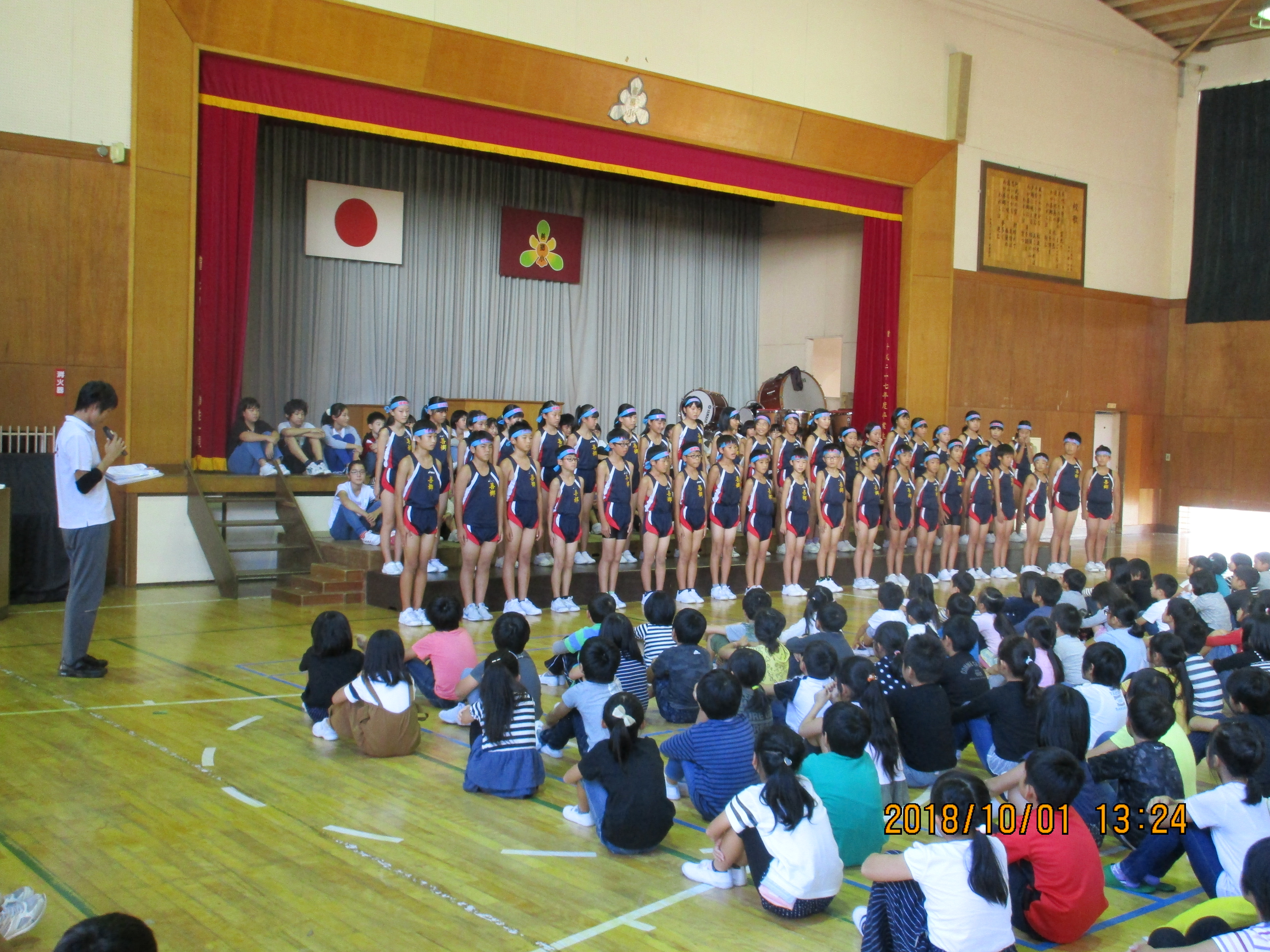 全校集会で今週行われる「西白河地区小学校陸上競技会」と「福島県下小中学校音楽祭 合奏」の壮行会を行いました。今回も応援団が前に出て全校生で心を込めて応援しました。よい緊張感をもって力を発揮して充実感が味わえるように願っています。