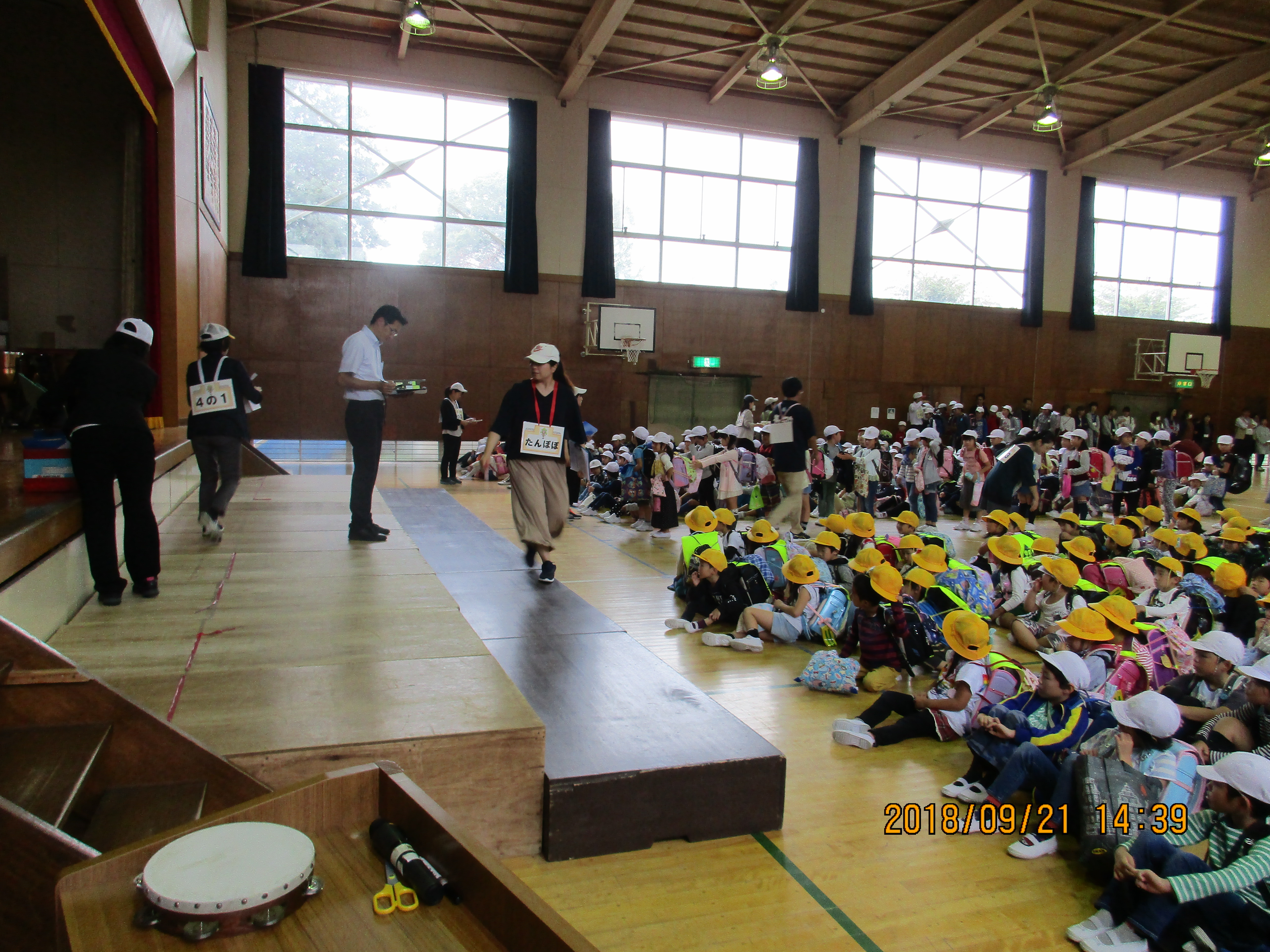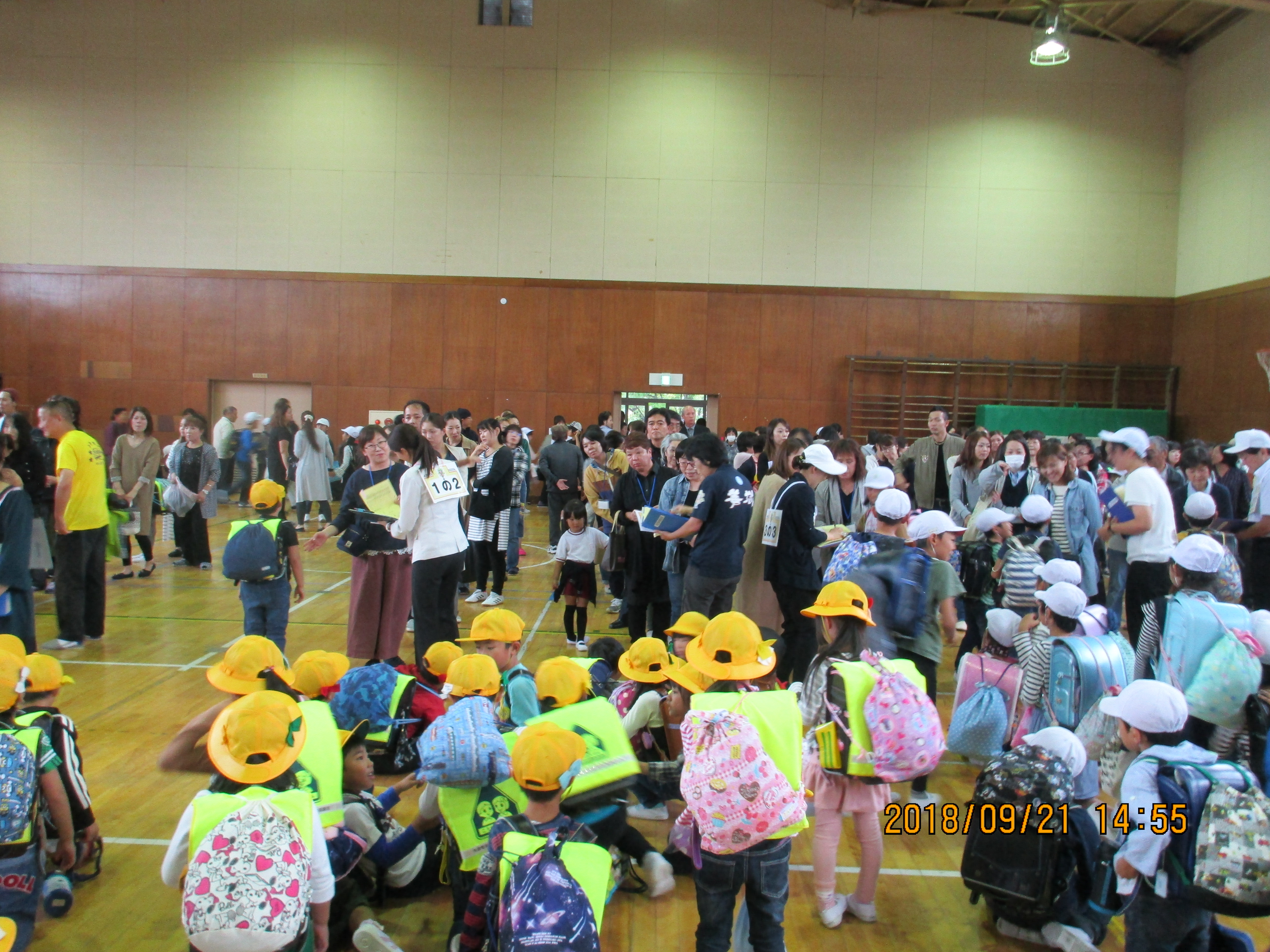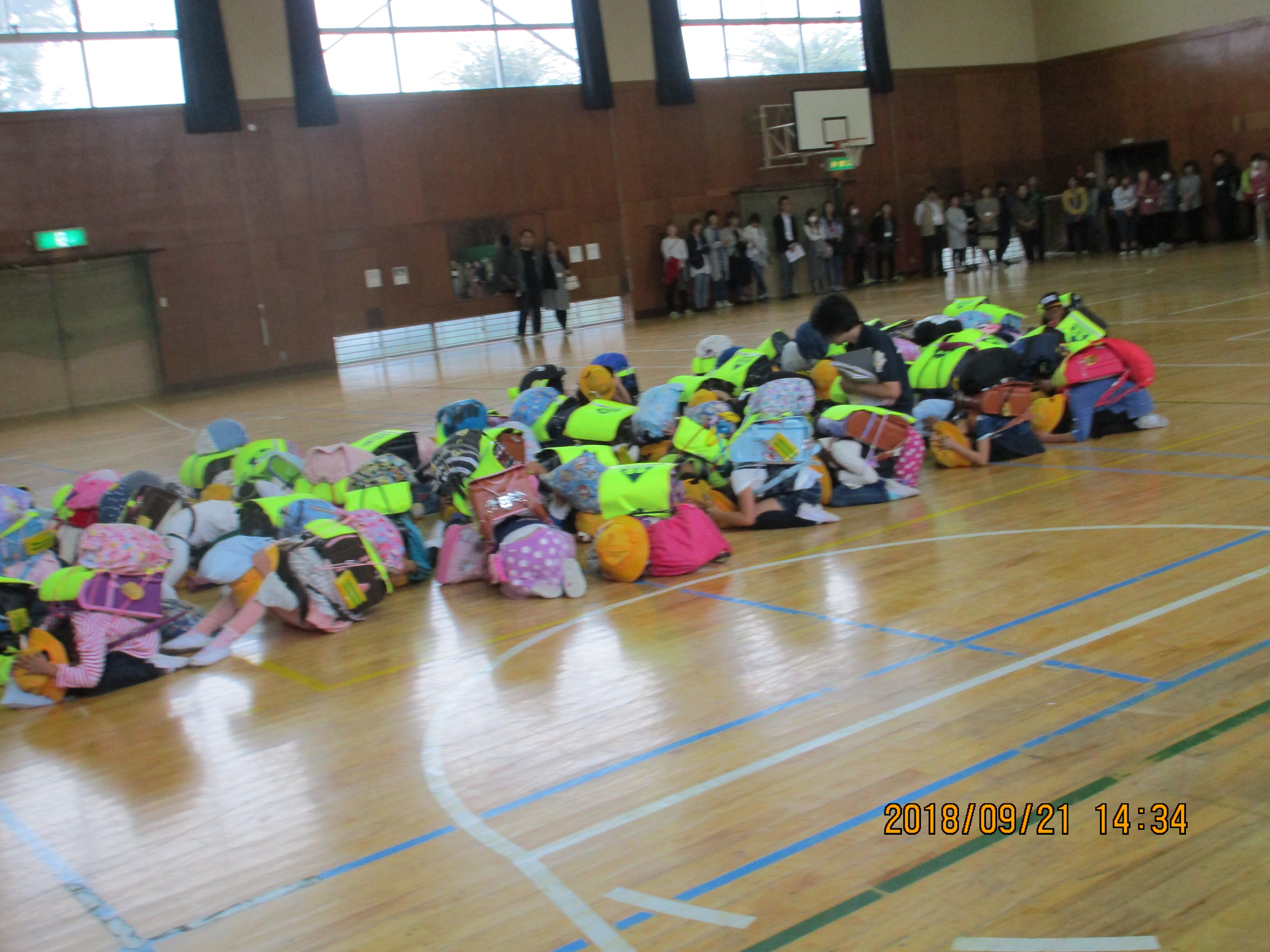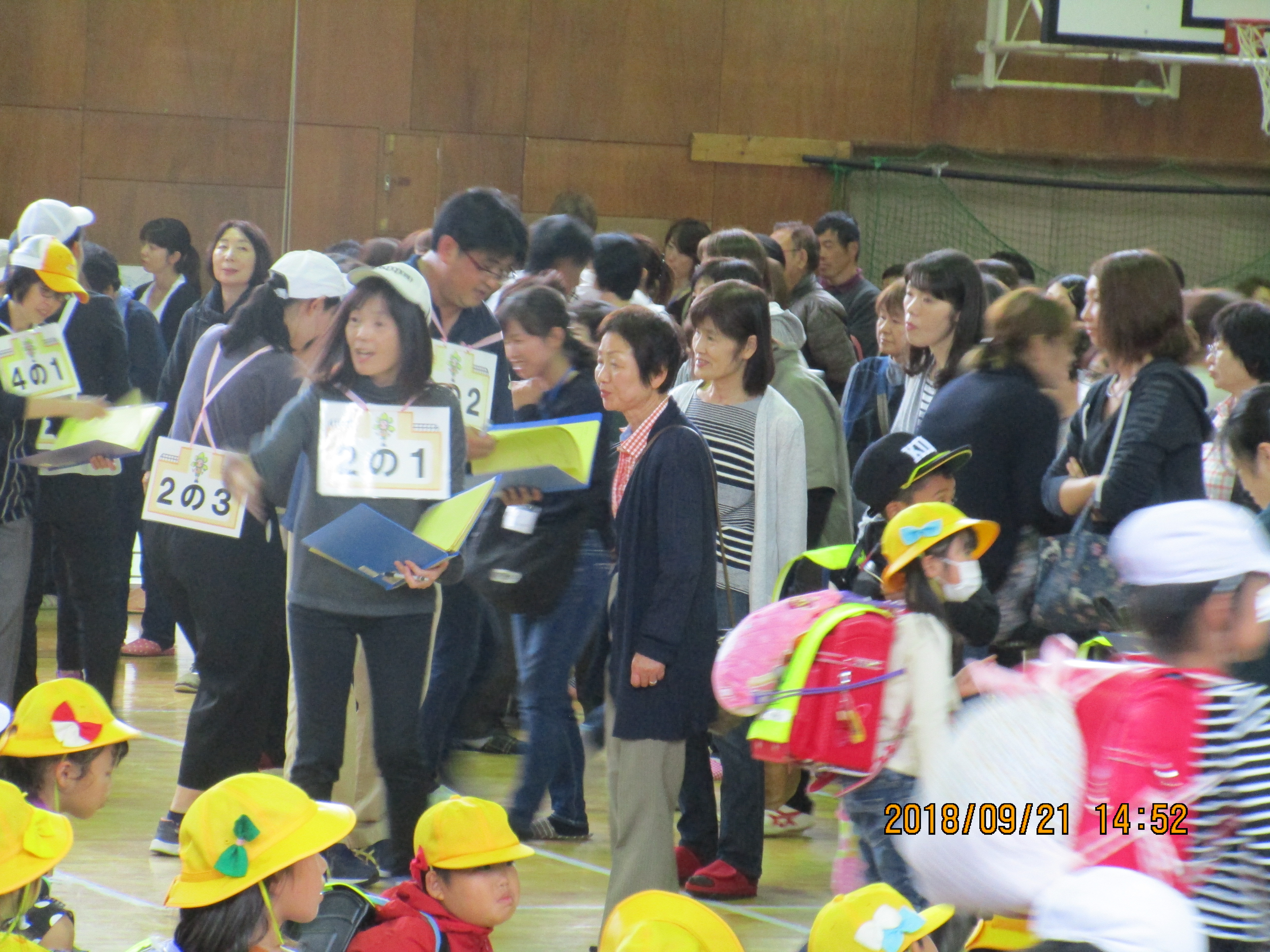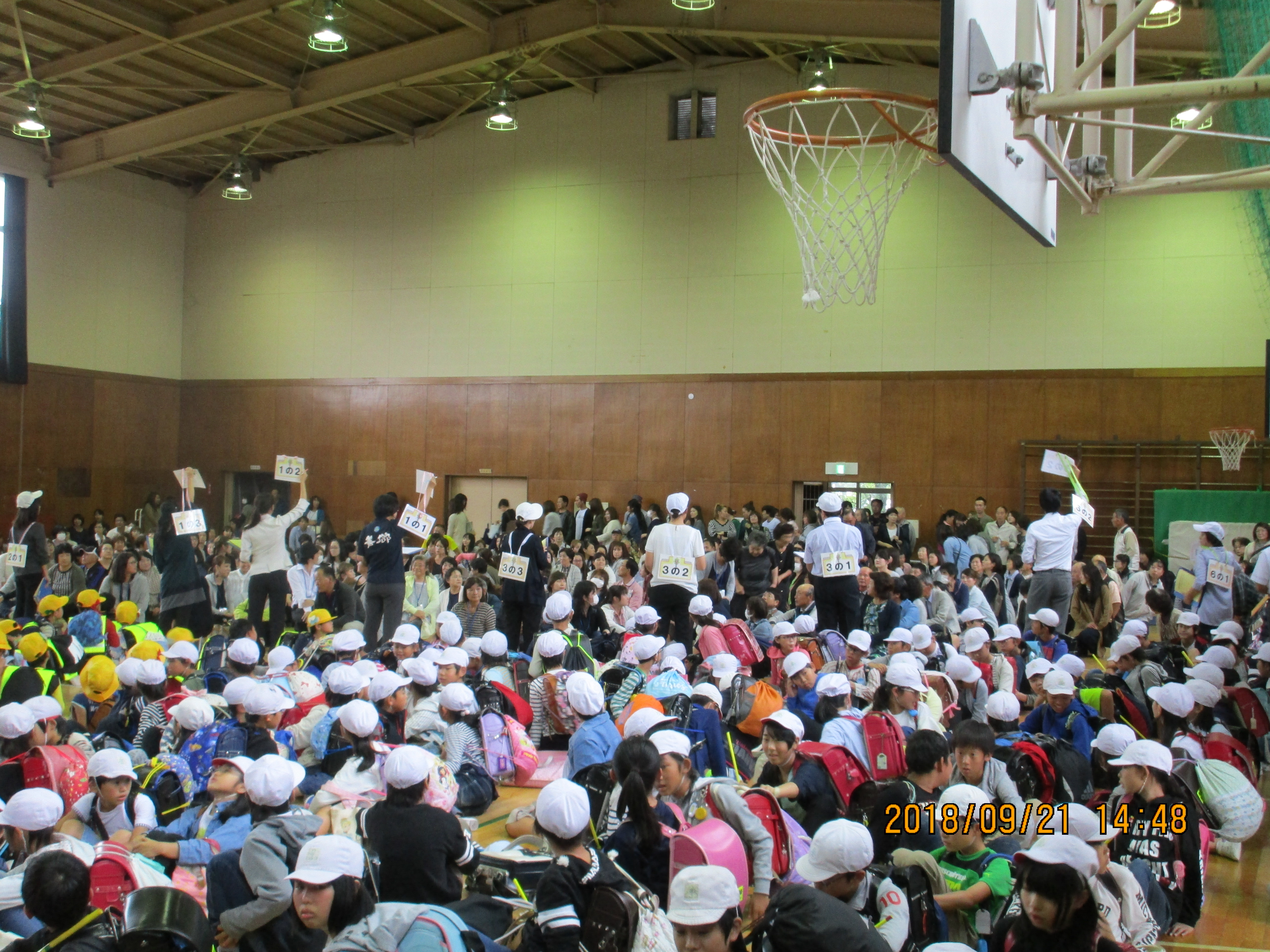 授業終了後は引き続き「地震による避難訓練」と「引き渡し訓練」を体育館で行いました。子どもたちは9月になって3回目の避難訓練ですが、放送をよく聞き緊張感をもって静かに避難することができました。全体会の後で一人一人名簿等で確認しながら引き渡し訓練を行いました。スムーズに進み20分足らずで終了することができました。お忙しい中ご協力ありがとうございました。毎年訓練をすることが大切だと思います。今後ともよろしくお願いします。
