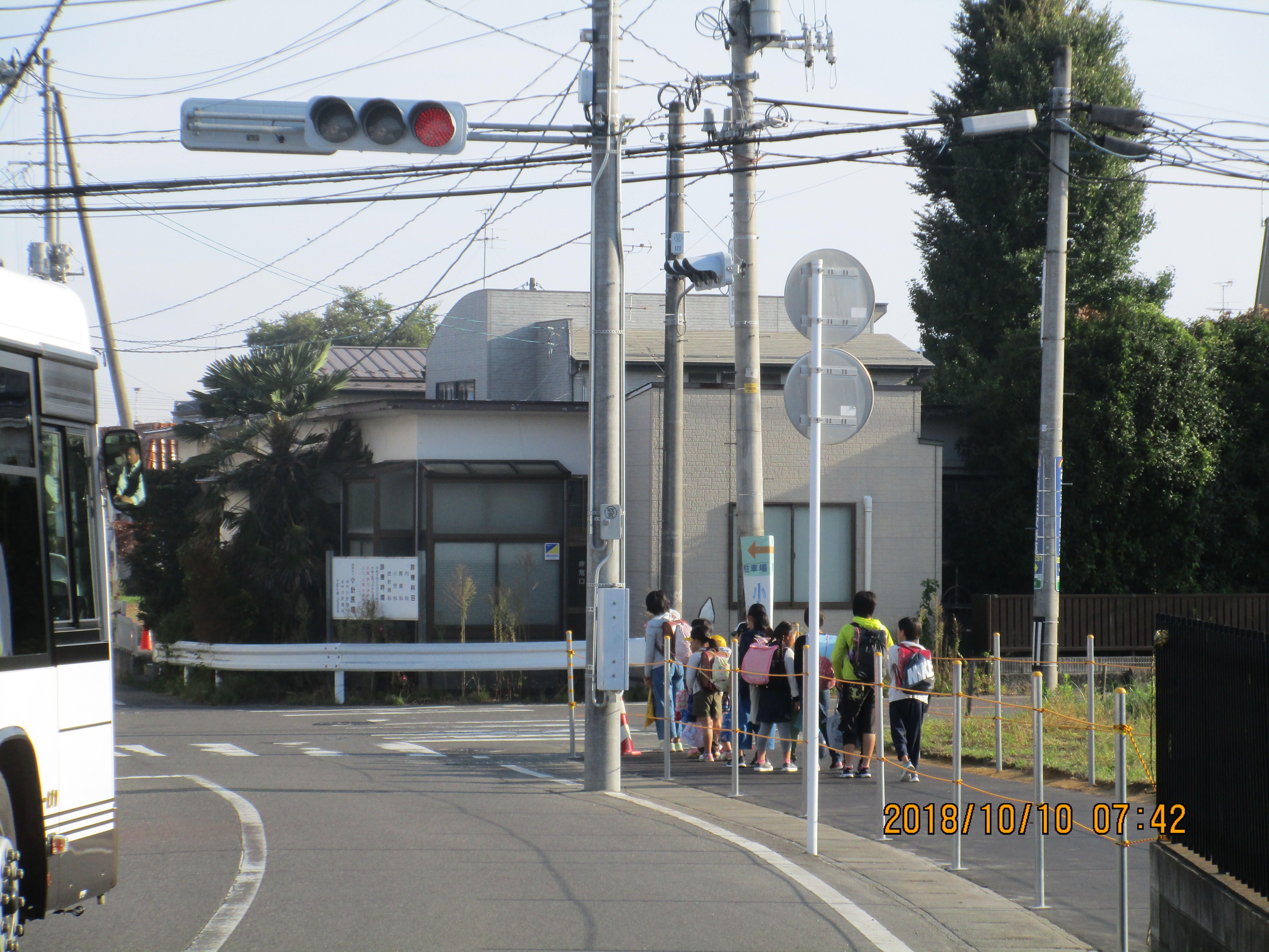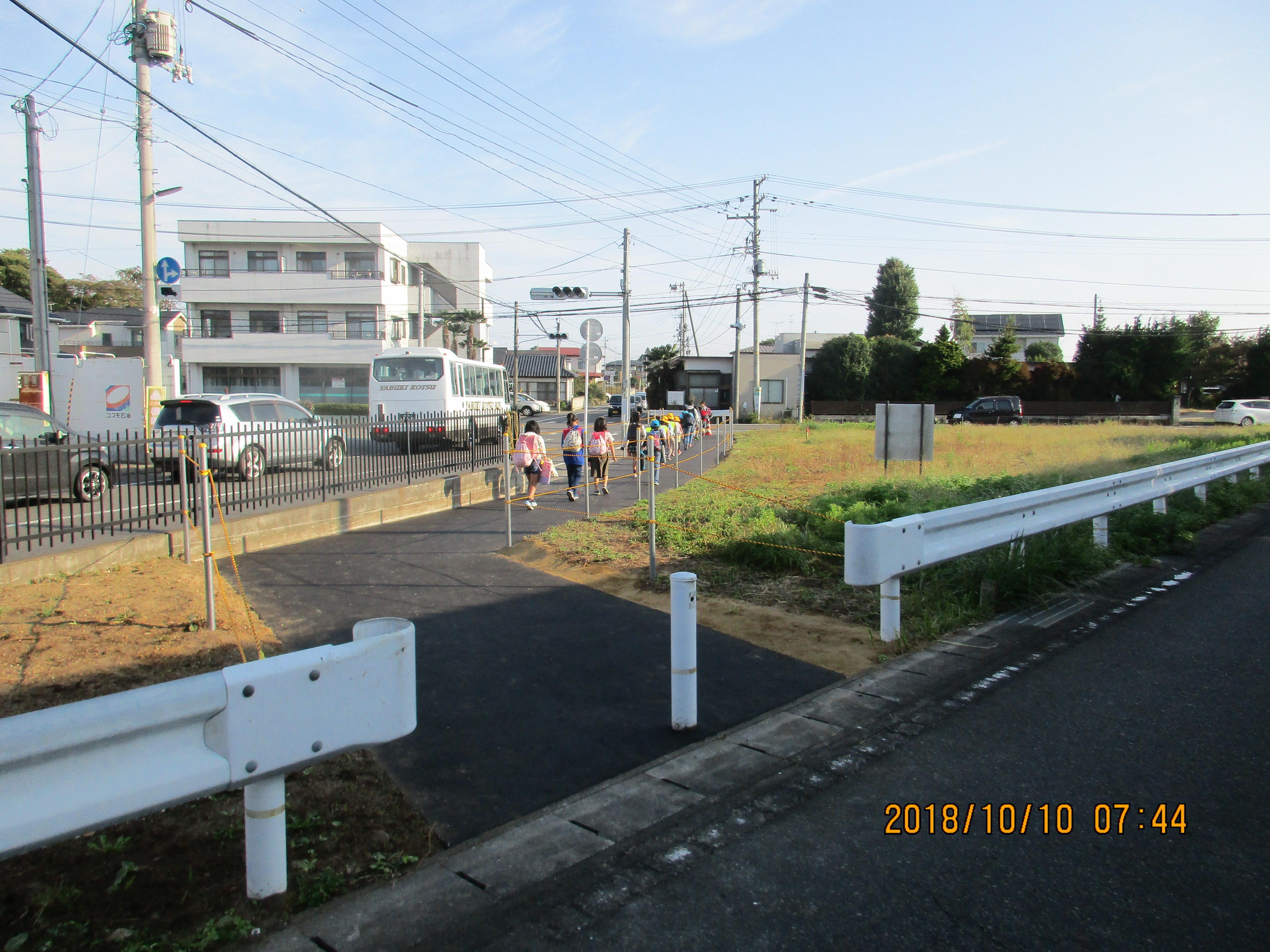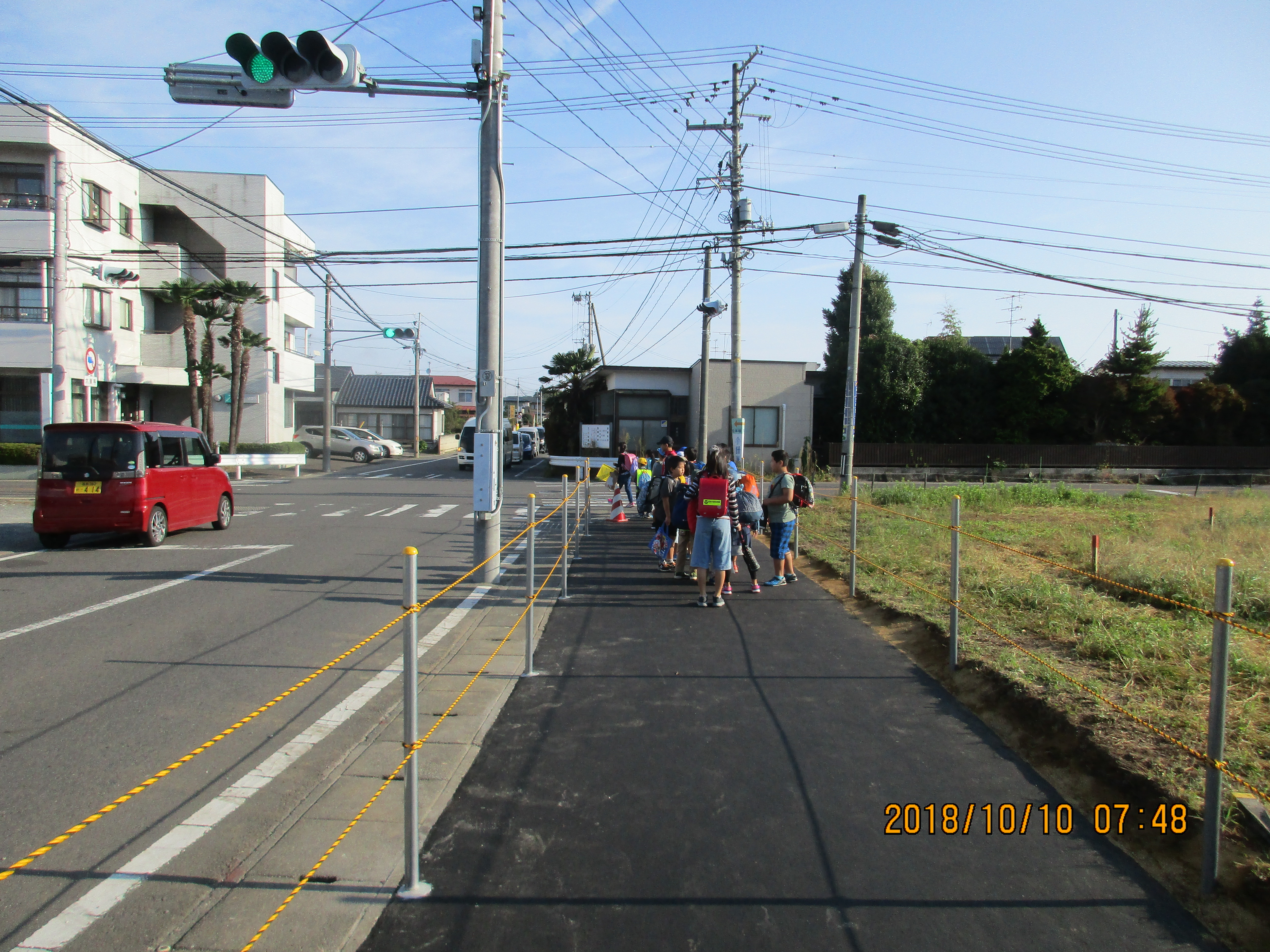 小針医院前の信号機のある交差点の手前の歩道が完成しました。今では信号待ちで、はみ出してしまうことがあり心配でしたが歩道を整備していただいたので安心です。歩道に入る時の通り方も指導しましたが、細い道路に侵入して来る車もいるので注意を呼びかけました。今後も安全に登下校できるようにご家庭でもご指導よろしくお願いします。
