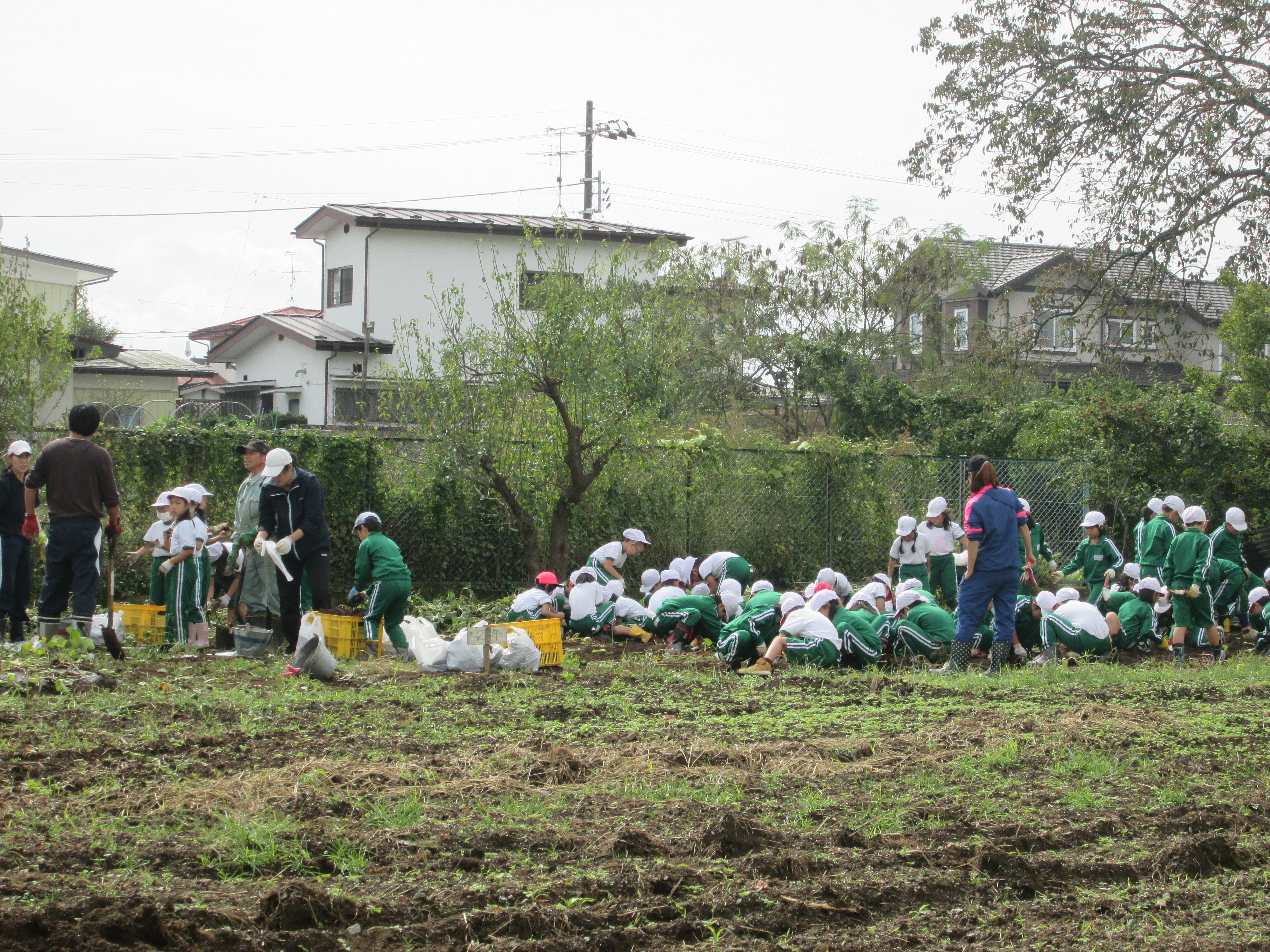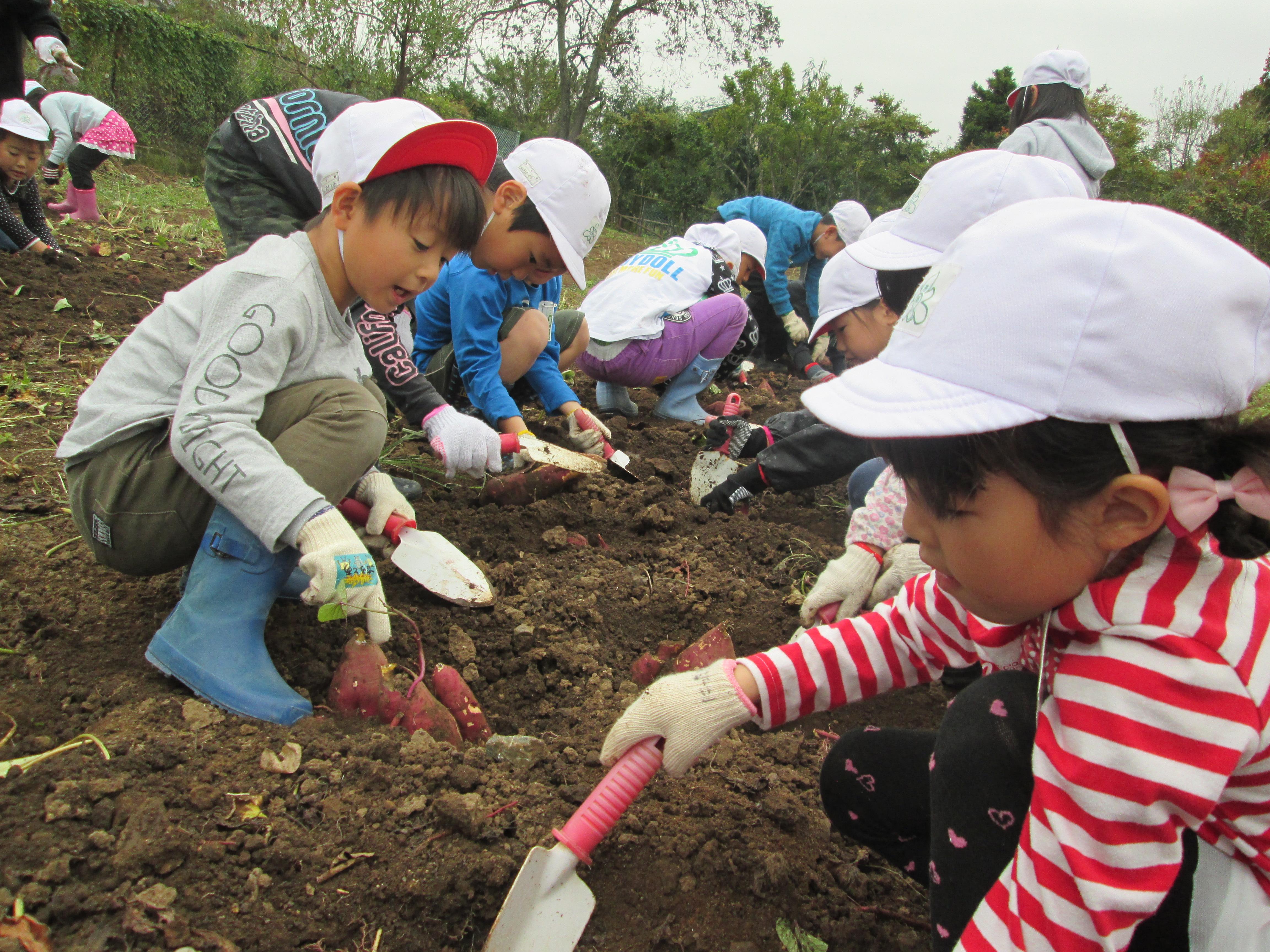 担任の先生や用務員さんのお話をよく聞き、みんな一生懸命にサツマイモを掘り起こしていました。