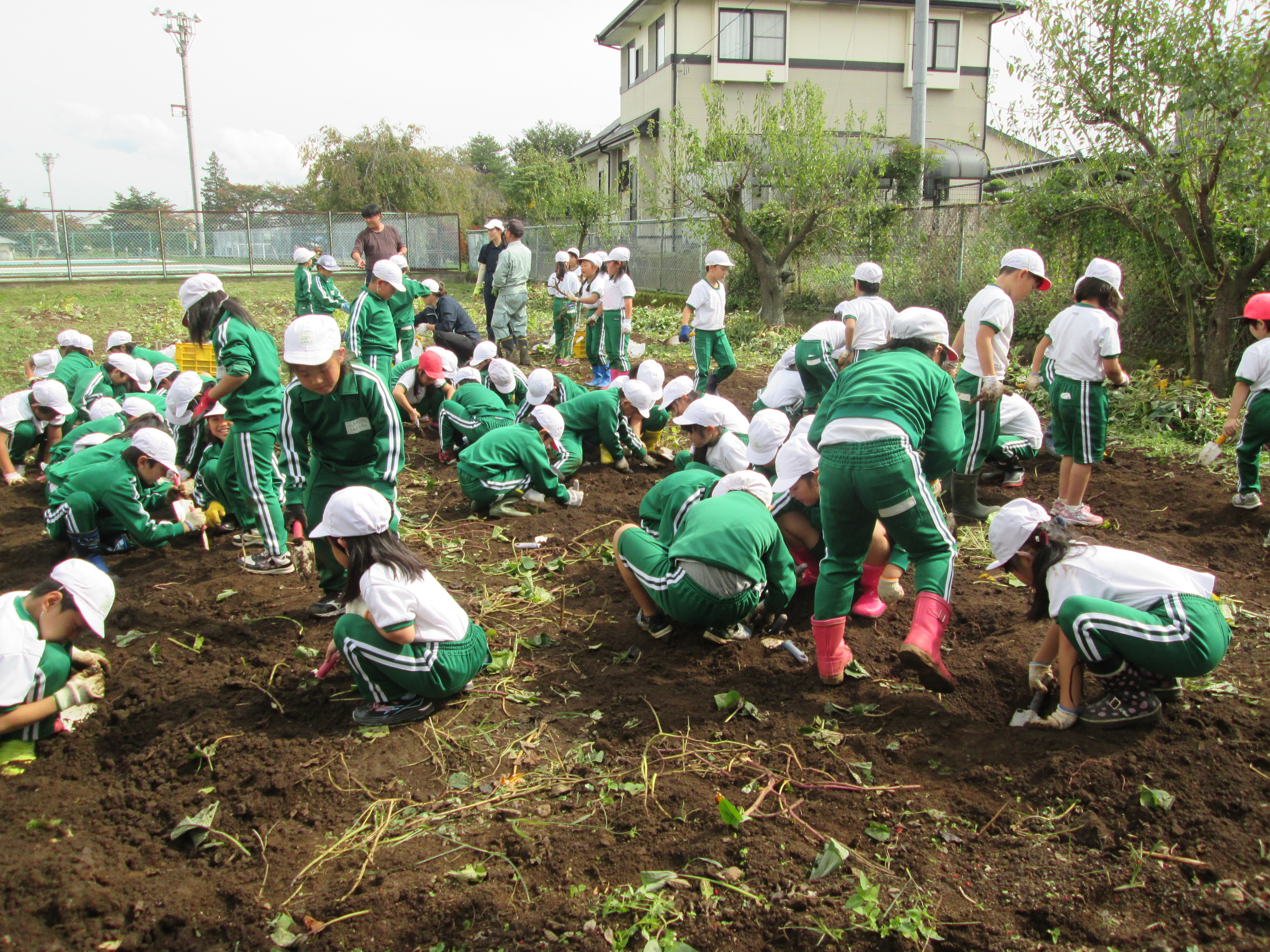 先日の2年生に引き続き、本日1年生がサツマイモ掘りをしました。