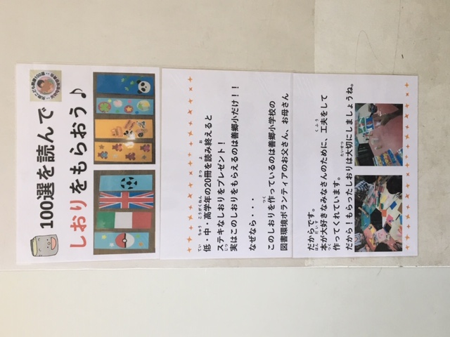 ・読書100選の20冊読書達成者プレゼント用しおり作成