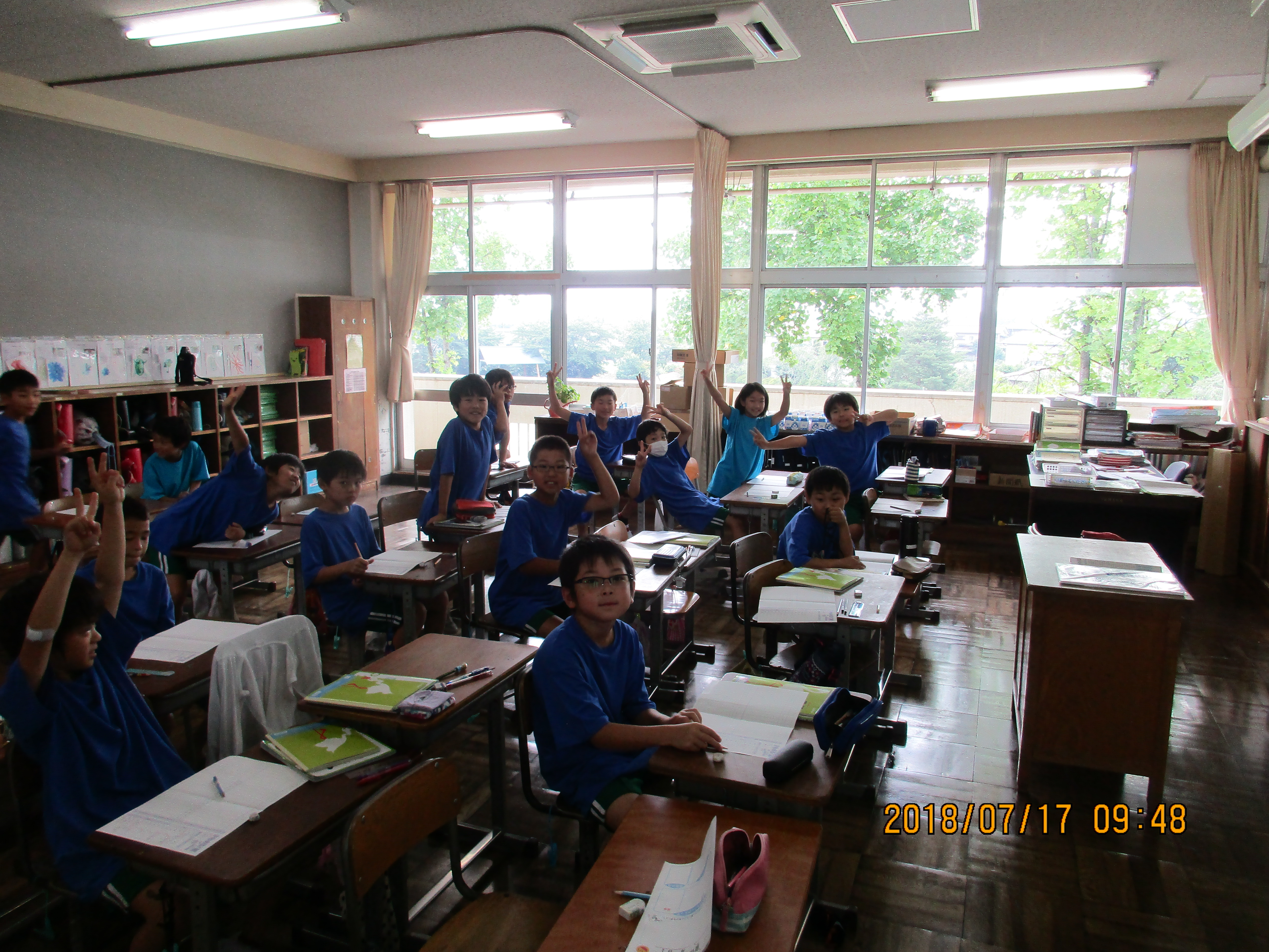 夏休みまであと4日となりました。今日も猛暑の中、子ども達は元気にプールで泳ぎ、校庭で元気にサッカーをする子もいました。熱中症にならないように注意を呼びかけています。