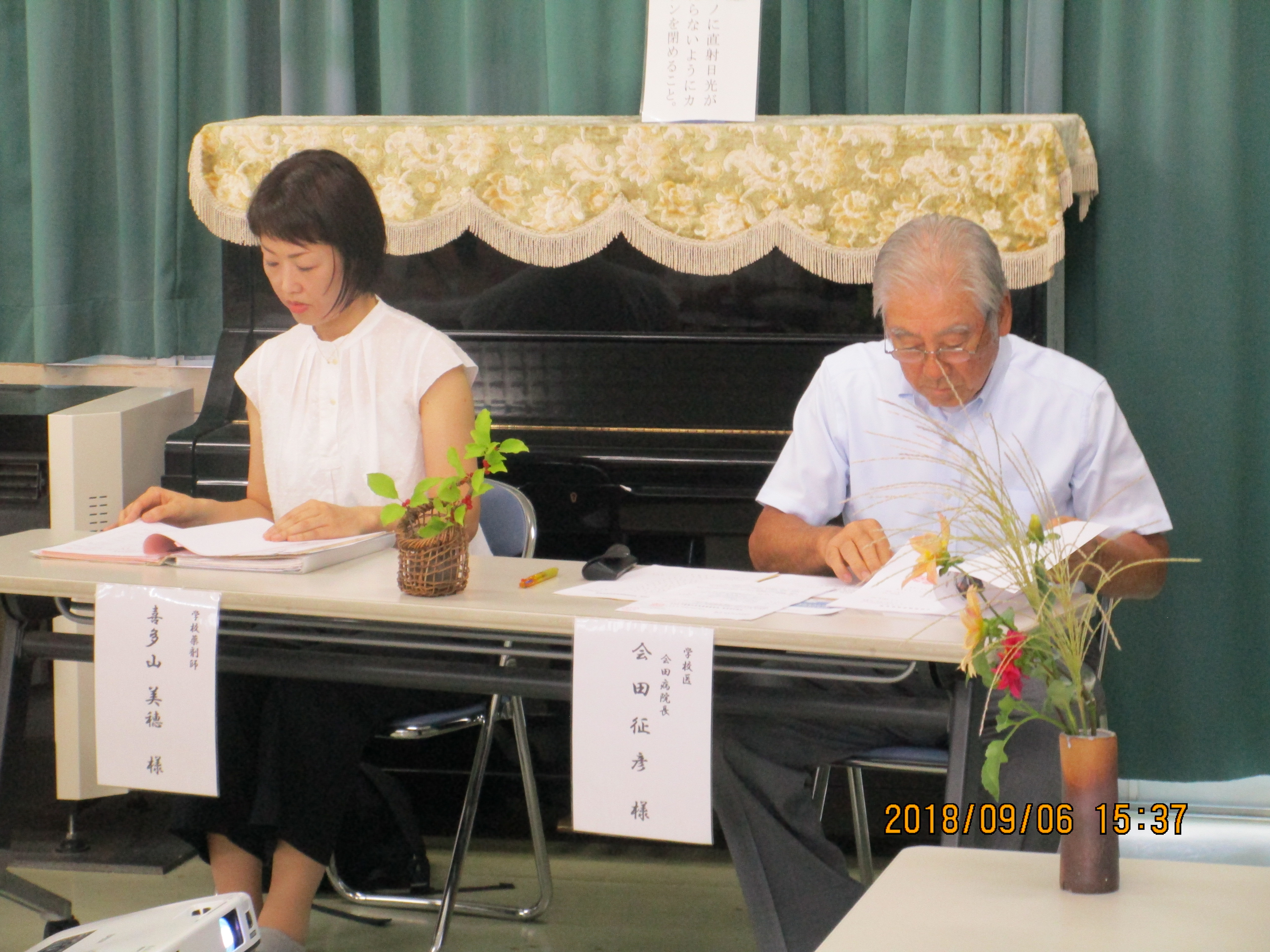 昨日、学校医の会田征彦先生と学校薬剤師の喜多山美穂先生にお越しいただき学校保健委員会を行いました。始めに善郷小学校の「定期健康診断の結果と課題」を坂内養護教諭が、次に「食育の取組と課題」についてを佐藤栄養士が発表しました。
