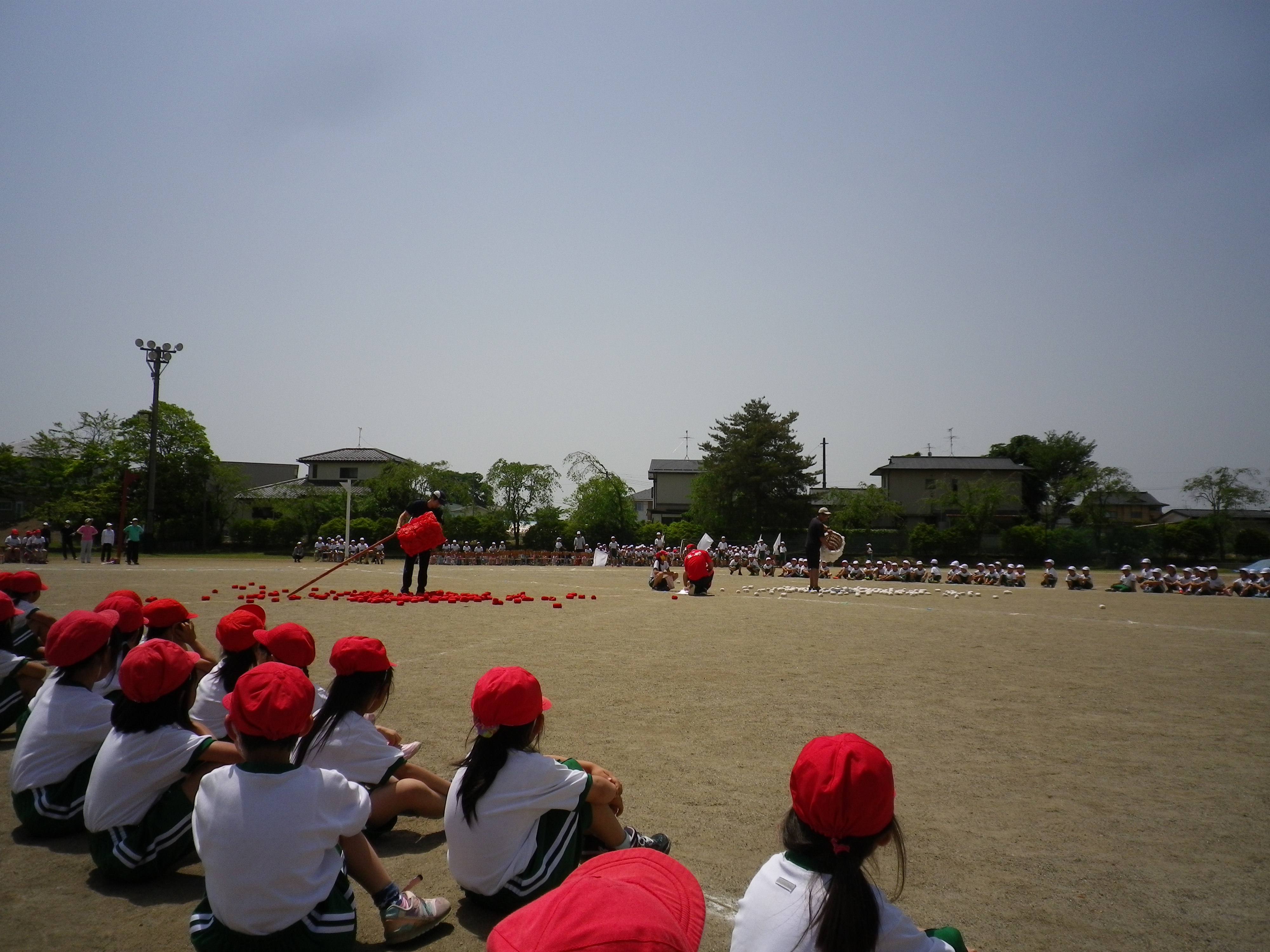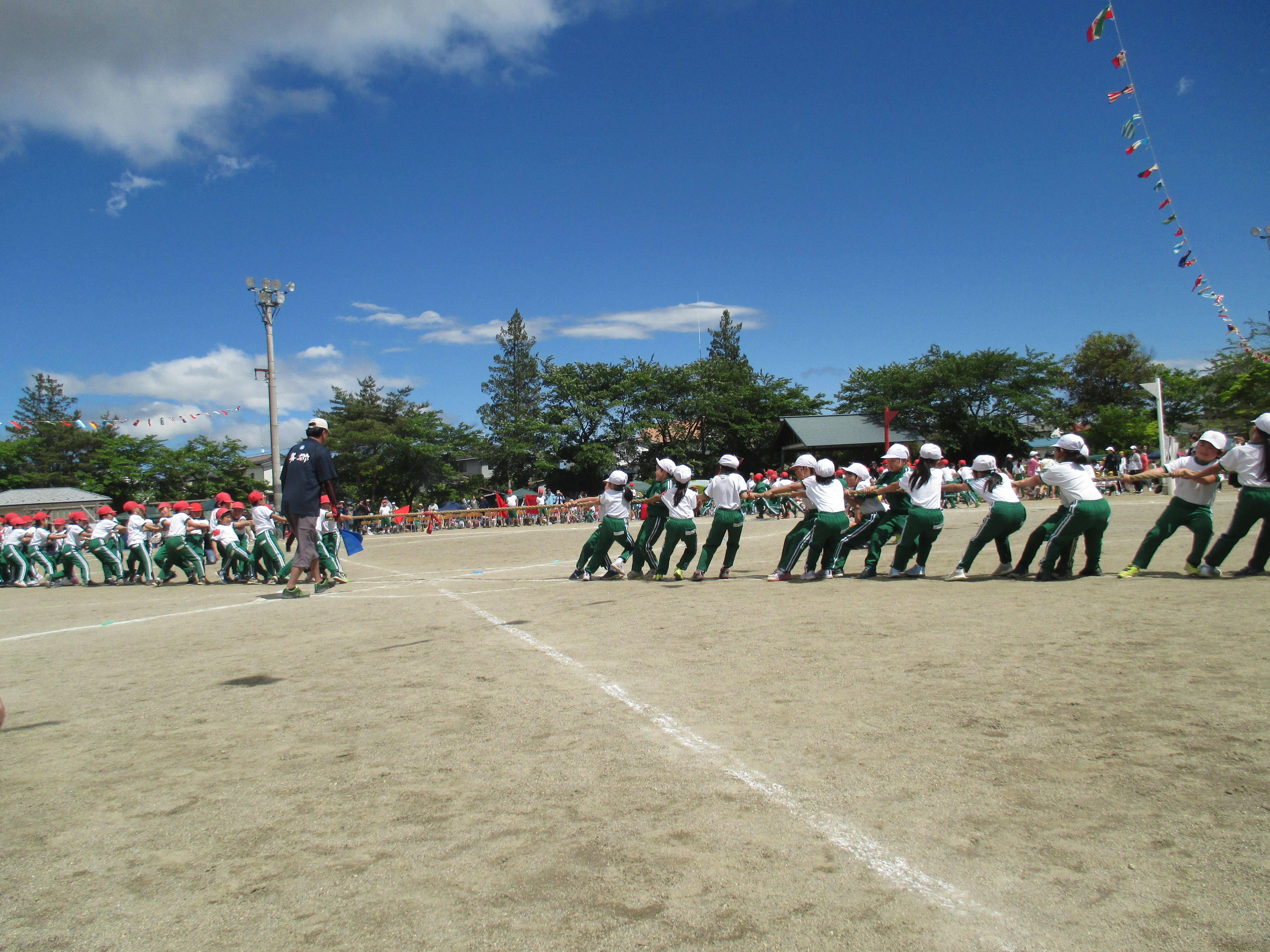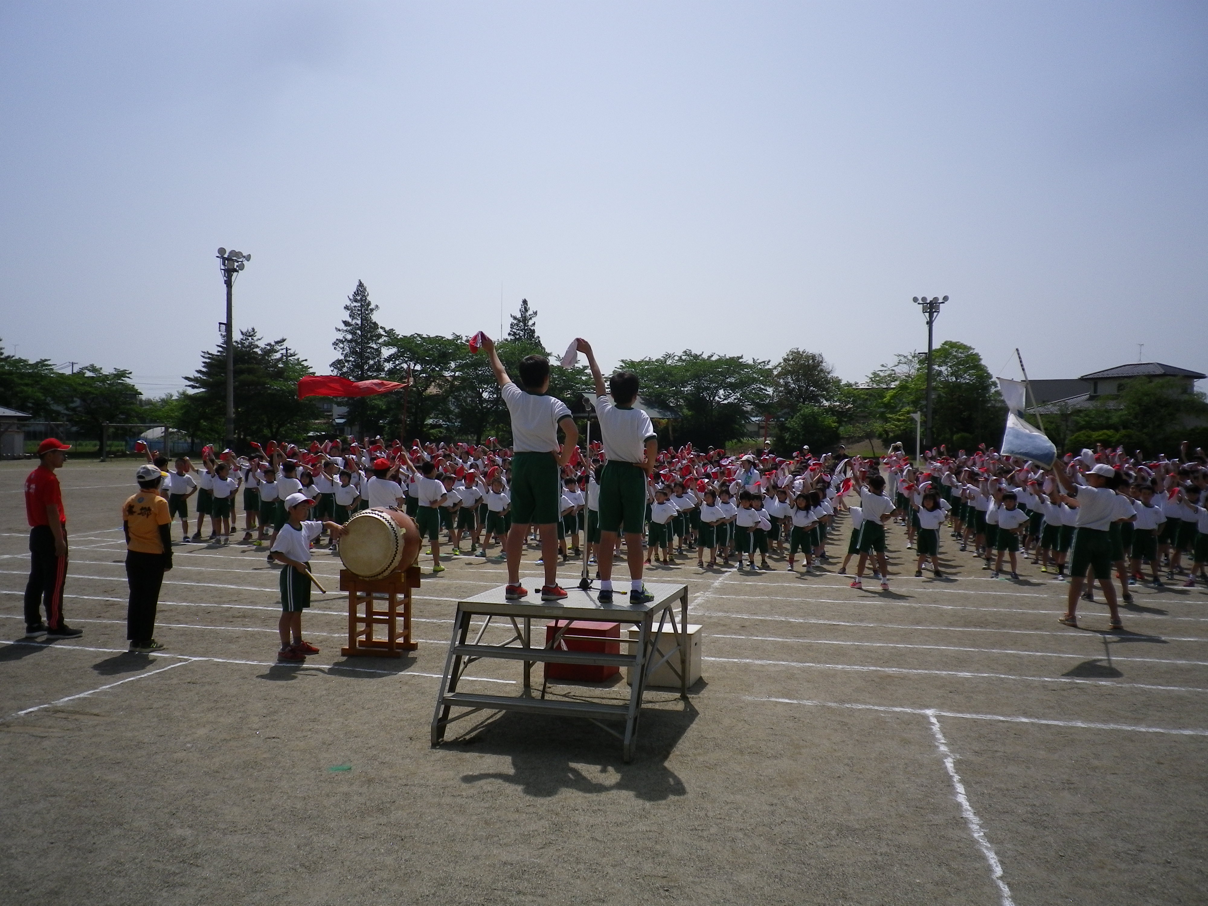 早朝より雨がちらつき天候が心配された運動会でしたが、予定通りにスタートして全種目を行うことができました。気温がなかなか上がらず肌寒い中でも熱気に満ちた子どもたちの最後まであきらめないで頑張る姿、紅白それぞれが一致団結、心をひとつにして協力し合う姿をお見せすることができました。
