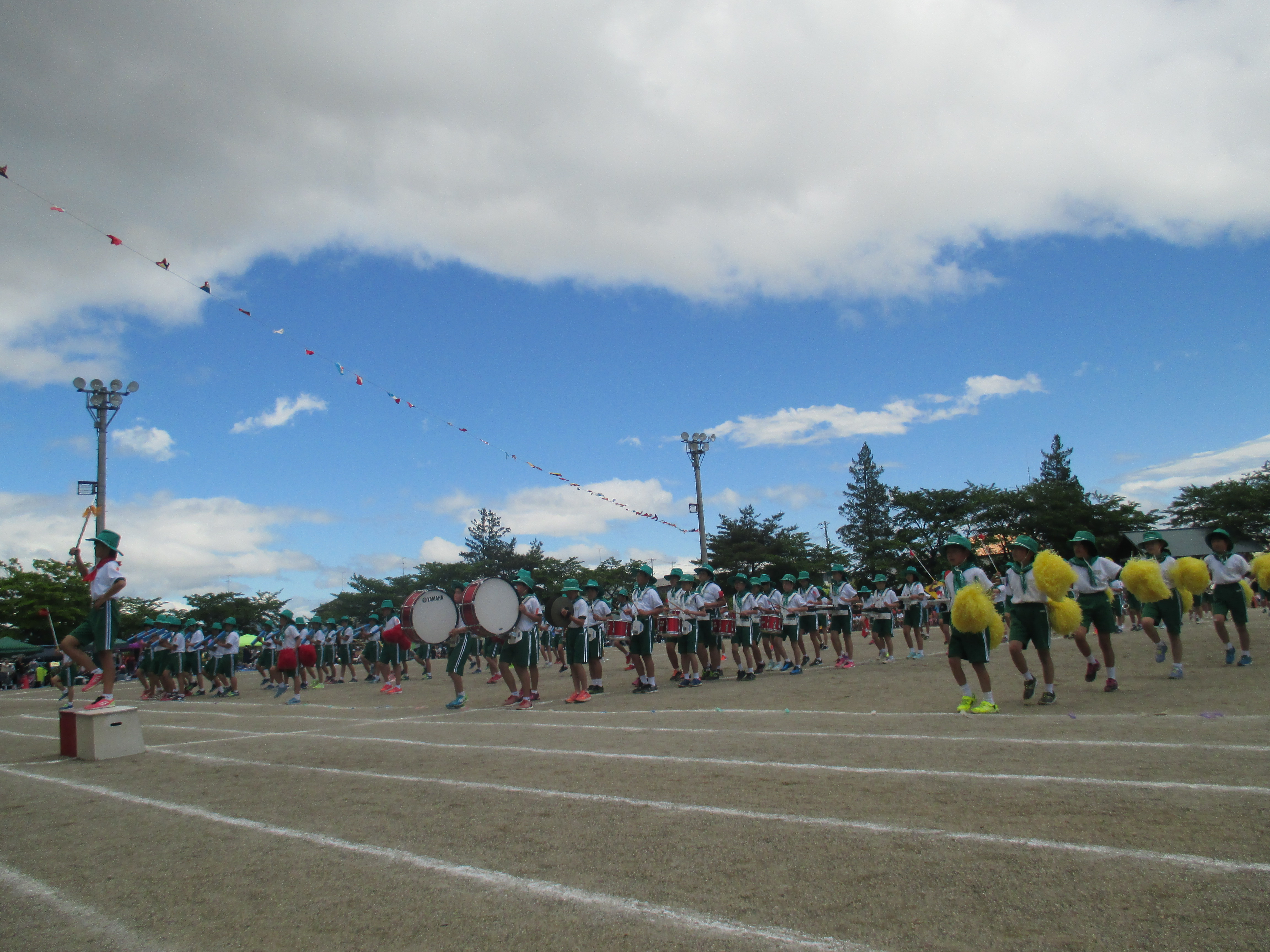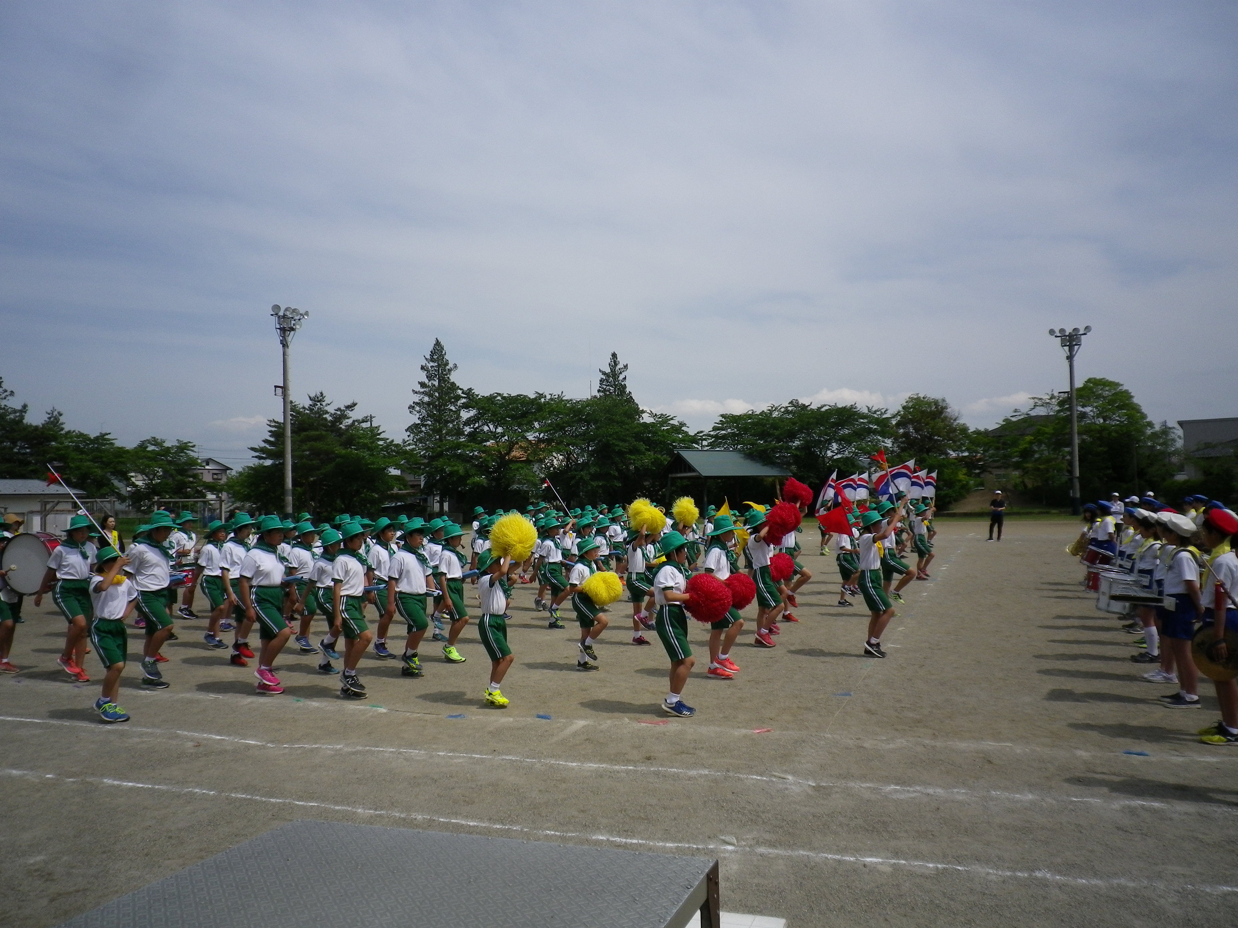 開会式や閉会式の子どもたちの姿勢や態度もしっかりできていて立派でした。個人競技では内容を確認したり、各係の動きがスムーズにできるように練習ができました。大玉転がしや玉入れはとても楽しく参加していました。紅白対抗リレーでは白熱した順位争いにみんなが応援に夢中になりました。午後からは5・6年生の鼓笛の練習を行いました。完成に向けて一人一人が自分の役割を意識して動いています。疲れていても粘り強く練習する姿に、すばらしい演奏が披露できると期待しています。