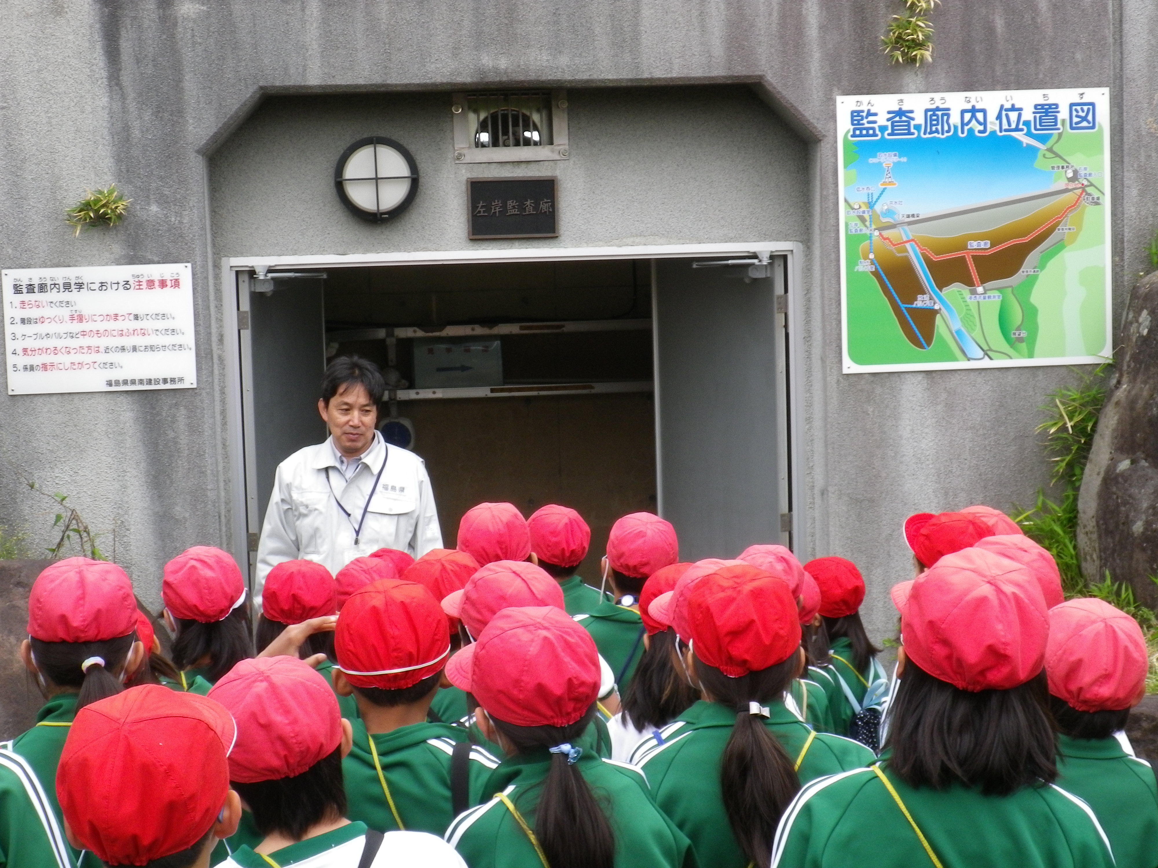 昨日 23日(水) に4年生が西郷村にある浄水場と堀川ダムを見学しました。浄水場で水がきれいにされる仕組みを学びました。浄水場できれいになった水が矢吹まで流れて来るのに8時間かかるということでした。堀川ダムも見学しました。ダムの大きさや働きなどのくわしい説明を聞いた後でダムの堰堤の中を通る監査廊というトンネルを見学しました。長い階段を下りたり上ったりしながらダムの中を見ました。入る前はすこしどきどきでしたが、出てきたときは晴れ晴れとした表情でした。