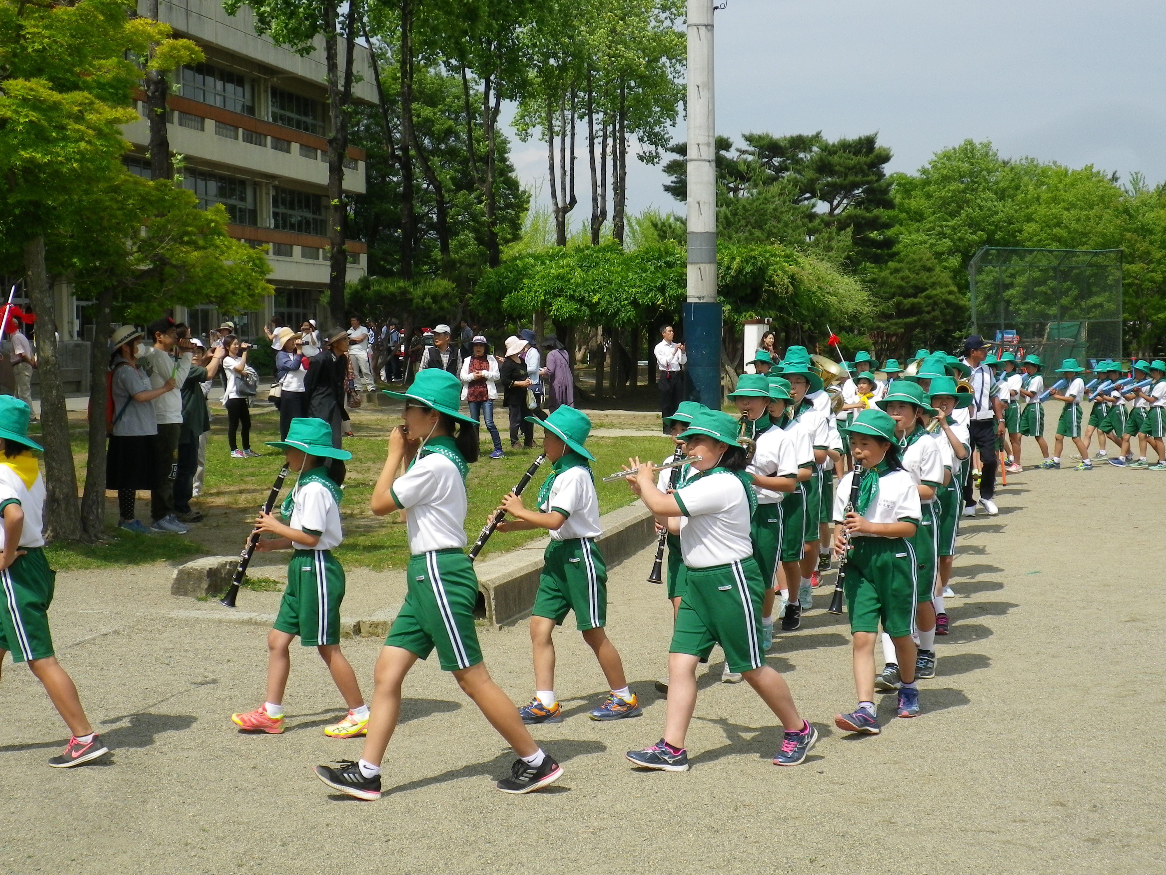 今年も青空のもと、交通安全鼓笛パレードを行いました。気温が上昇して健康面が心配されましたが、風が爽やかで最後まですばらしい演奏を披露することができました。