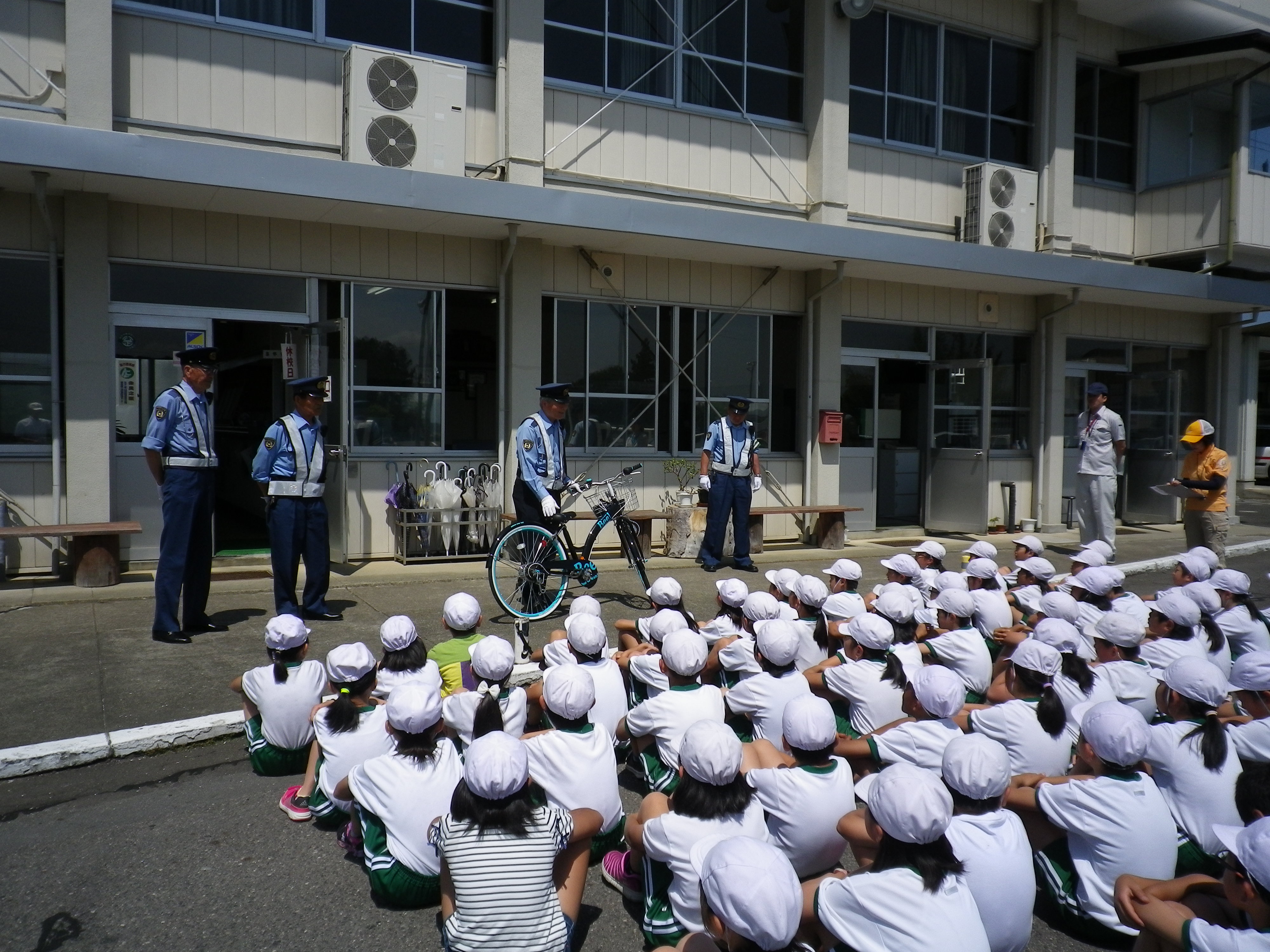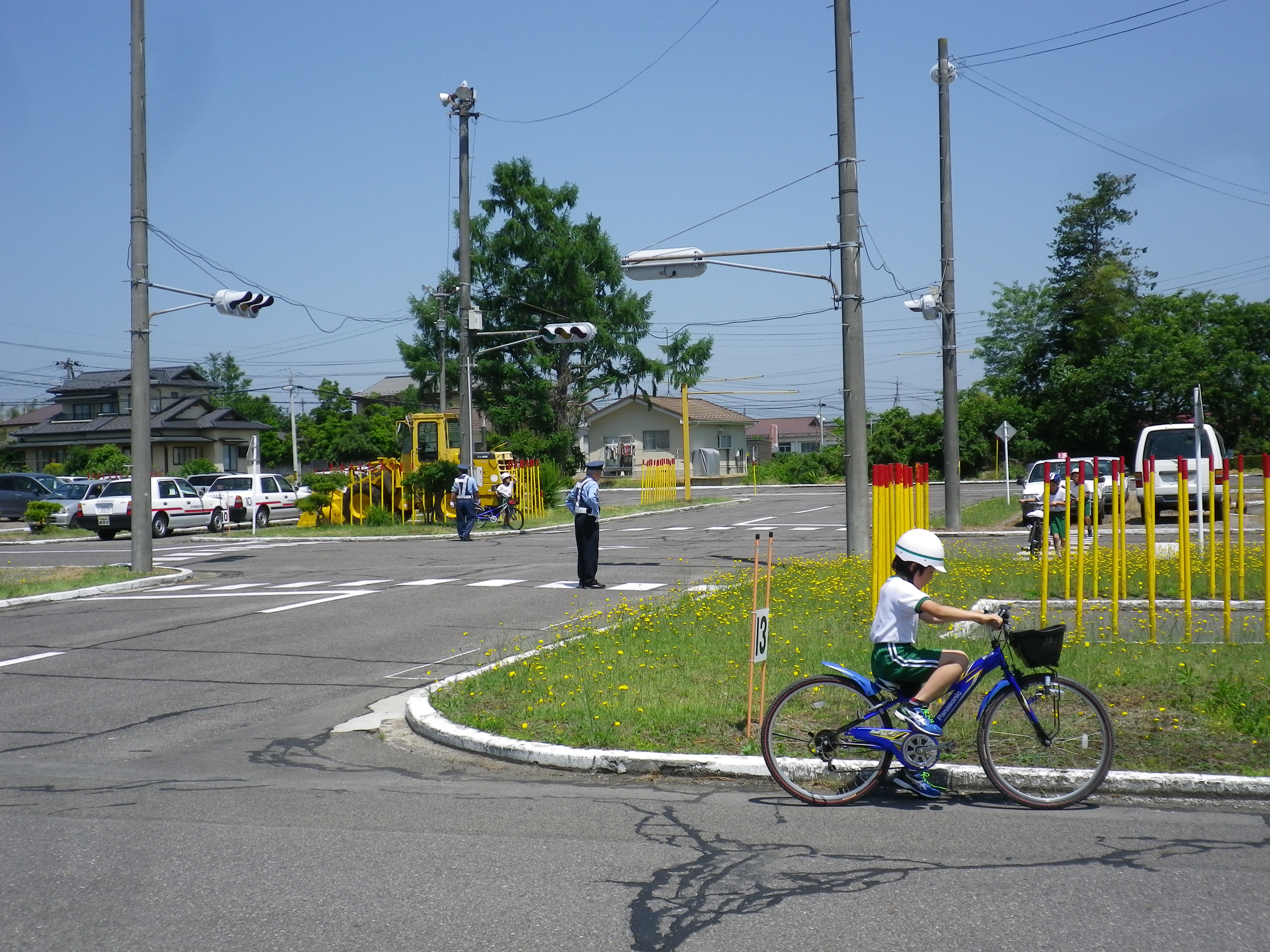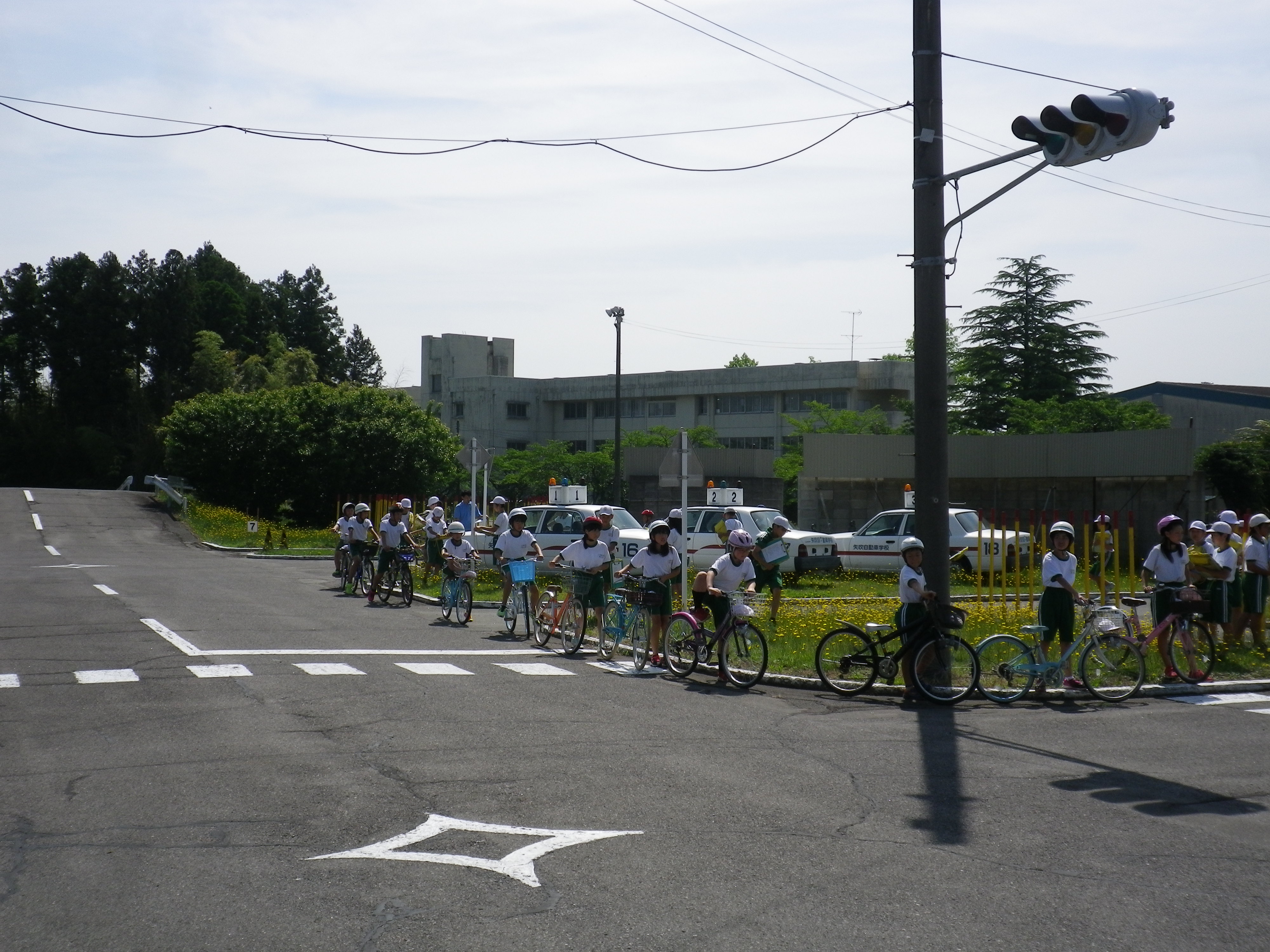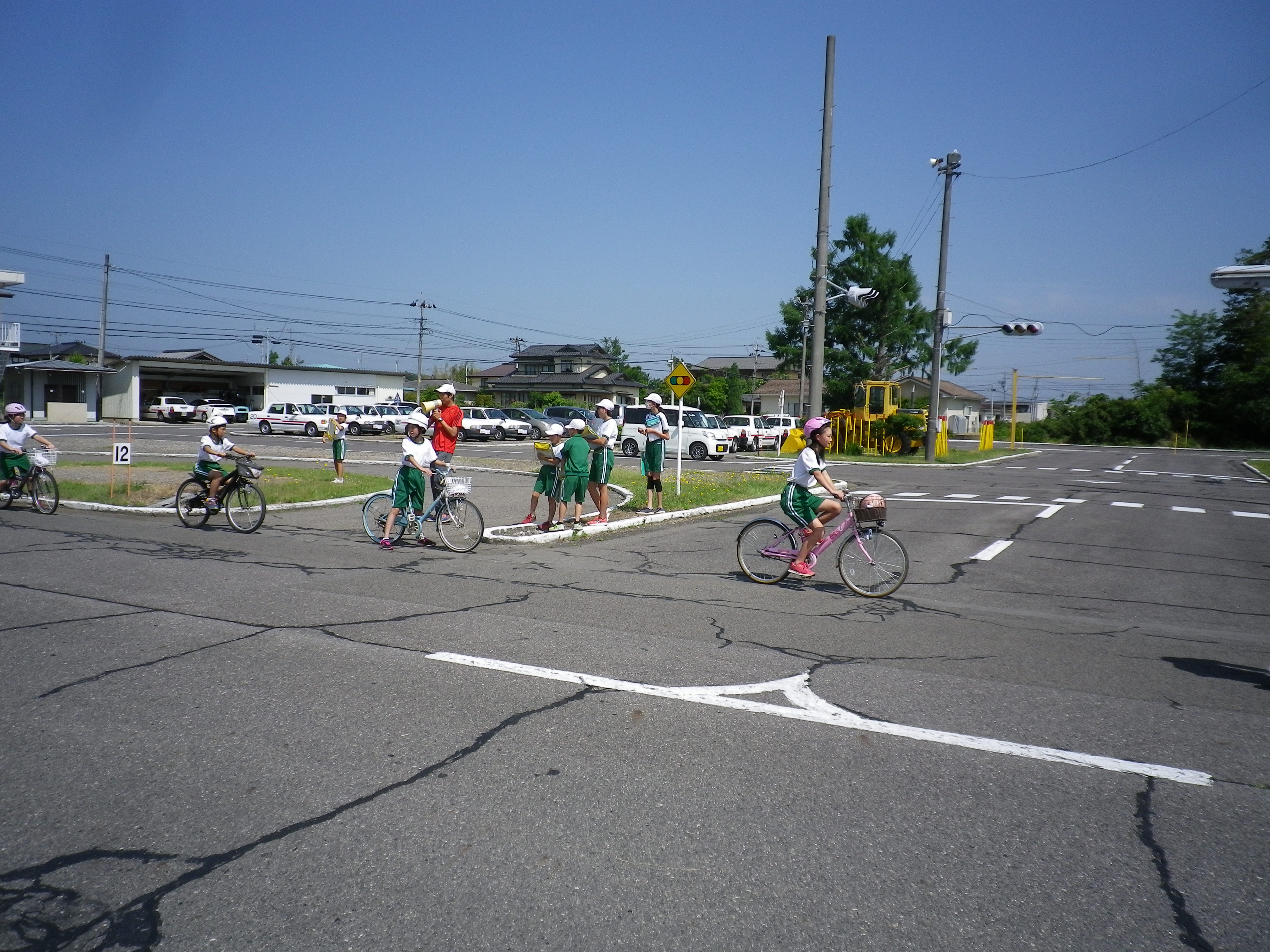 5・6年生はコースを決めて安全確認の仕方や交差点での停止や横断について実際に自転車に乗りながら学びました。ある程度運転の技術は身に付いてきていますが、改めて安全な自転車の乗り方について確認できました。