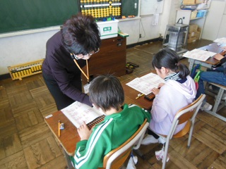 2月26日(月)と27日(火)に、4年生が算数の時間に「そろばん教室」を行いました。