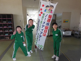 児童会運営委員会の委員が、お昼の放送で全校生に呼びかけました。