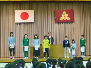 3月5日(月)の全校集会で、健全育成標語コンクール表彰式が行われました。