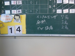 2月7日(水)、インフルエンザによる欠席者が昨日よりも減りました。
