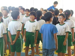 歌の練習では、隣同士が向かい合って、お互いの歌っている様子を見合いながら、口の開き方や表情をチェックし合っていました。
