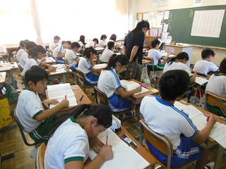 三神小6年生18名が6人ずつ3クラスに分かれて、善郷小の6年生と一緒に学びました。