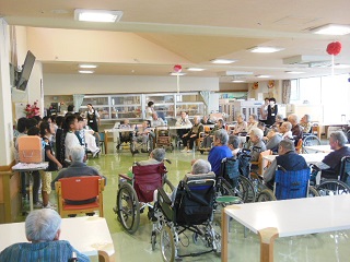 ホームの方々は、音楽に合わせて拍手をしたり、知っている曲は一緒に歌ったりしてくださいました。