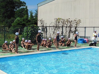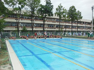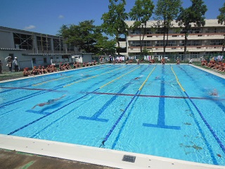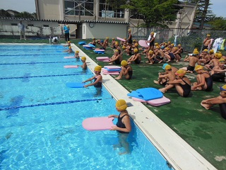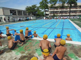 去年までは小さいプールでしたが、今年は大きなプールで水泳の学習をしてきました。