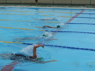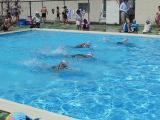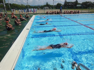 25m自由形、25m平泳ぎ、25m背泳ぎなどの種目に取り組みました。