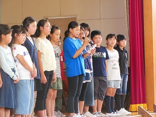 児童代表が激励の言葉を贈り、吹奏楽クラブの代表が大会に向けての抱負を述べました。