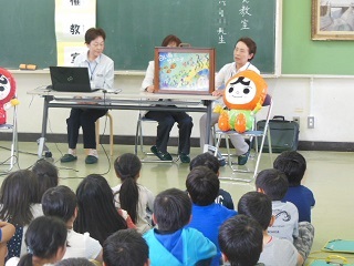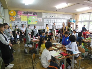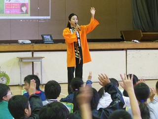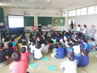 「田んぼの学校」校長のタレントの大桃美代子さんが来校し、事前学習会が行われました。