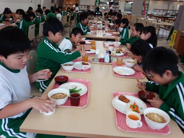 お昼は、那須甲子青少年自然の家のレストランで昼食バイキングを食べました。