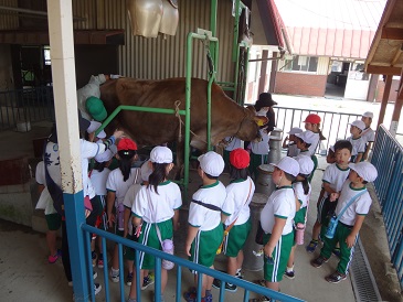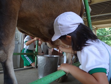 山羊やウサギなどのたくさんの動物たちとふれあったり、牛の乳搾り体験をしたりしました。