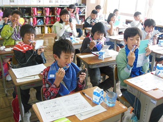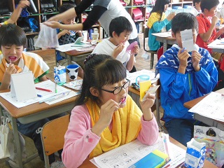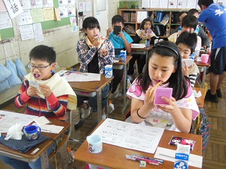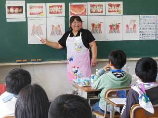 3人の歯科衛生士さんにお出でいただき、各教室で指導していただきました。