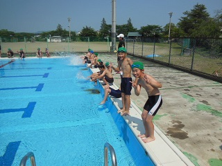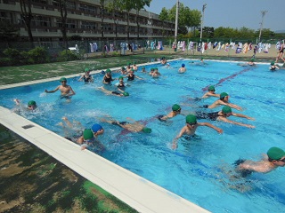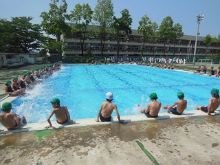 5校時目、善郷小学校のプールを使っての水泳学習が始まりました。