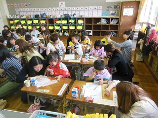 「白い魚とサメの子」という紙芝居を見て、「いじめ」について考えました。