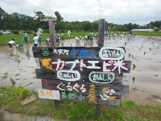 コシヒカリの苗をどろんこになりながら、手で植えました。