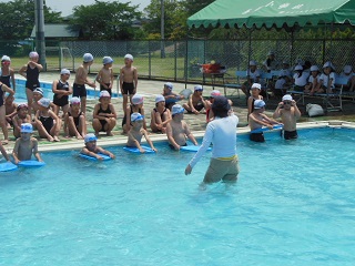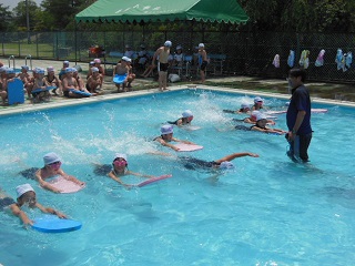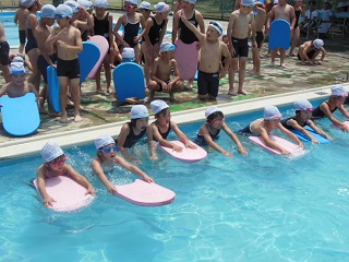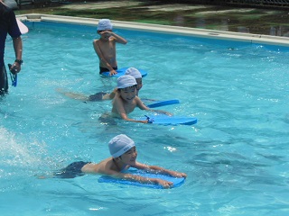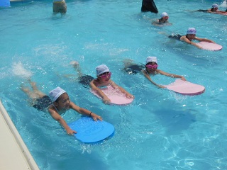 ビート板を使ってのバタ足などをして楽しく学習していました。