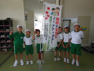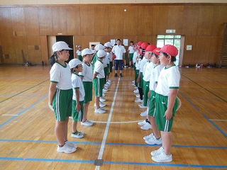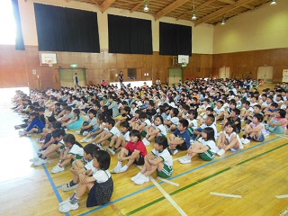6月12日(月)の全校集会で今年度の「プール開き」を行いました。