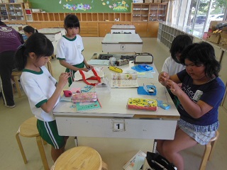 ポップコーンを作って食べたり、ブラバンアクセサリーを作ったりしました。