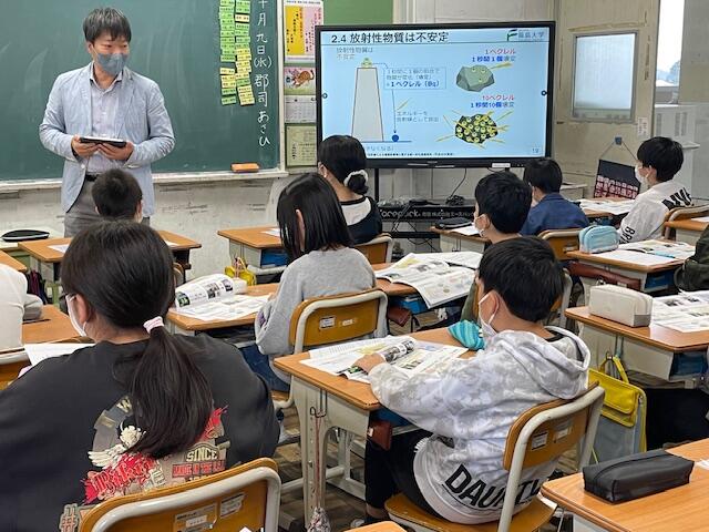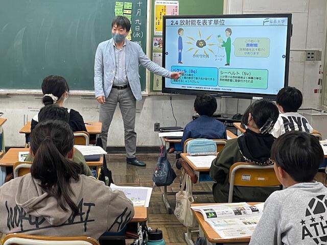 福島大学食農学類申教授をお招きして、5年生が放射線について学習しました。放射線は目に見えず、「なんとなく怖いもの」という印象をいだきがちですが、その正体を知れば怖くはありません。"放射線てなに?”から始まり、BqやSv等の単位や半減期等の性質について学んだ後、原発事故後の福島の食の安全について理解を深めました。