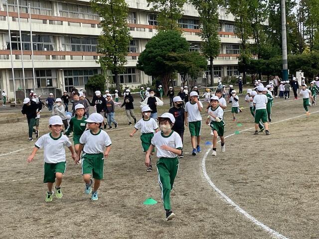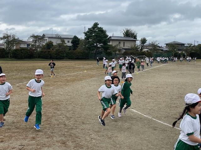 11月1日の持久走記録会に向けた練習が始まりました。秋晴れのもと、子供達は気持ちよさそうに走っていました。