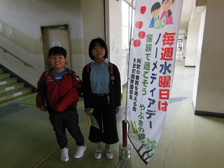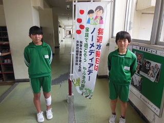 児童会の運営委員会からもお昼の放送で、ノーメディアデーを知らせています。