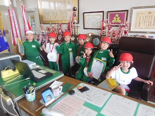 校長室では、飾ってあるたくさんのトロフィーに驚いていました。
