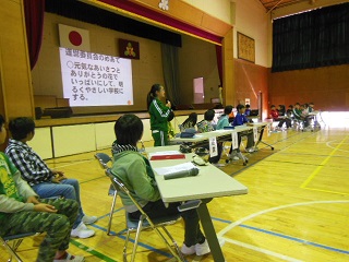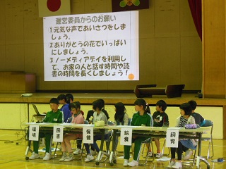 6年生の各委員長がそれぞれの委員会の活動内容を紹介し、みんなにお願いしたいことを話しました。