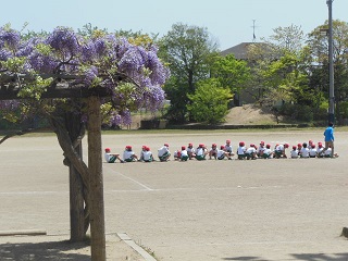 藤棚の藤の花がきれいに咲いて、子どもたちの応援をしているようです。